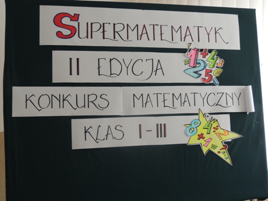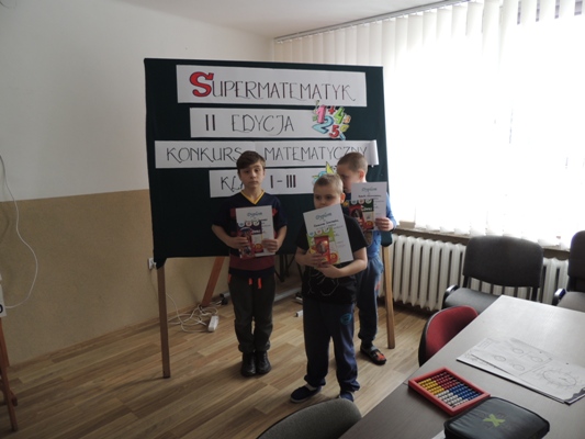 Zadania były dostosowane do indywidualnych możliwości uczniów, a tematem przewodnim, zgodnie z tym co działo się za oknem, była zima. Konkurs przebiegał na trzech poziomach do których zakwalifikowano uczestników zgodnie z ich możliwościami i umiejętnościami. Do konkursu przystąpili uczniowie z wszystkich klas I-III szkoły podstawowej, w sumie 11osób. Tytuł Super Matematyka otrzymali: