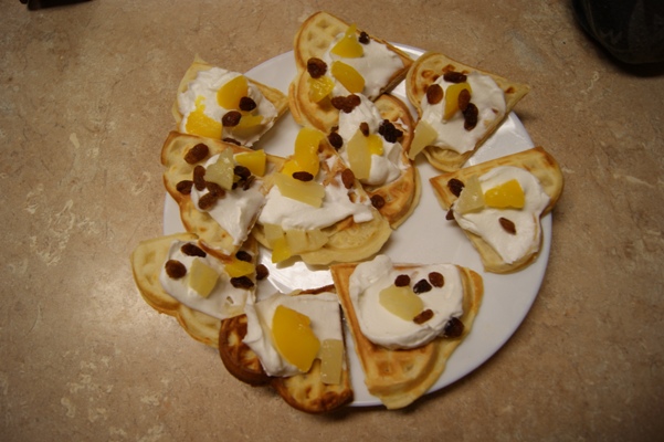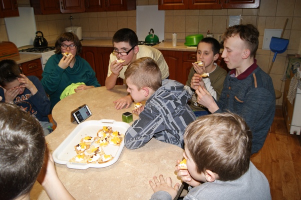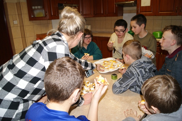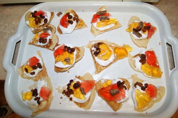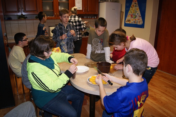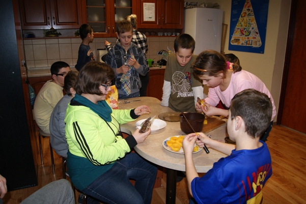 Wychowankowie grupy I i IV uczestniczyli w integracyjnych zajęciach kulinarnych. Przygotowali pyszny, kolorowy deser – gofry z bitą śmietaną, galaretką i owocami. Zaangażowanie dzieci było ogromne, chętnie wykonywały wszystkie potrzebne czynności do przygotowania dania. Największą radość sprawiło młodym kucharzom to, że deser wyszedł pięknie i smacznie co potwierdzili zaproszeni na ucztę goście!
