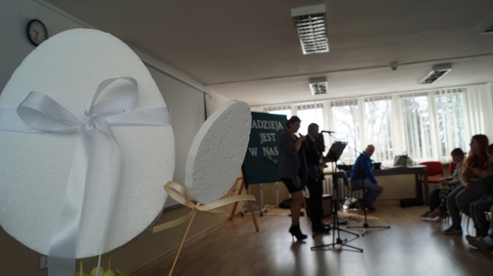 Święta Wielkanocne to wyjątkowy czas. W naszym ośrodku z okazji zbliżających się świąt odbył się koncert pt. „Nadzieja jest w nas” w wykonaniu pani Katarzyny Antoniak i pana Mariusza Skiby. Wspólnie zaśpiewaliśmy „Barkę”, a następnie wsłuchaliśmy się w nastrojowe pieśni religijne oraz ballady znanych polskich wykonawców. Muzyka wprowadziła słuchaczy w świąteczną atmosferę i znacznie ją ociepliła wbrew temu co przyniosła nam wiosenna aura.