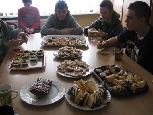 W dniu 20 marca 2018 r. w naszym ośrodku odbyły się warsztaty kulinarne skierowane do uczniów klasy III Gimnazjum. Celem warsztatów było poznanie tradycyjnych wypieków związanych ze Świętami Wielkanocnymi, wykształcenie praktycznych umiejętności cukierniczych oraz przybliżenie zawodu cukiernika dla przyszłych uczniów. Podczas warsztatów powstały pyszne babki piaskowe, babeczki drożdżowe, króliczki z ciasta drożdżowego, muffiny oraz drobne kruche ciasteczka cytrynowe. Zaangażowanie uczniów było ogromne, wykazali się pomysłowością i wielką determinacją. Uczyli się precyzyjnego wykonywania czynności z przestrzeganiem zasad bezpieczeństwa i higieny pracy pod nadzorem starszych kolegów i koleżanek z klasy III ZSZ. Podsumowaniem zajęć była wspólna konsumpcja przygotowanych smakołyków.