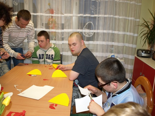 15 marca 2018 r. w grupach wychowawczych I i II odbyły się integracyjne zajęcia na temat „Nadchodzi Wielkanoc”, miały one charakter zajęć otwartych i skierowanebyły do wychowawców. Celem zajęć było poznanie i kultywowanie tradycji oraz obyczajów wielkanocnych. W czasie zajęć wykorzystano liczne utwory literackie oraz piosenki. Wychowankowie wspólnie rozwiązywali „Wielkanocną krzyżówkę” oraz wielkanocne zagadki. Kolejnym elementem zajęć było wykonanie wielkanocnej kury z kartonu oraz kolorowych pisanek metodą Decoupage. Dużo radości sprawiła dzieciom zabawa ruchowa „Wielkanocne zajączki”. Za swoją aktywność podczas zajęć dzieci otrzymały słodkie upominki - czekoladowe jajeczka.