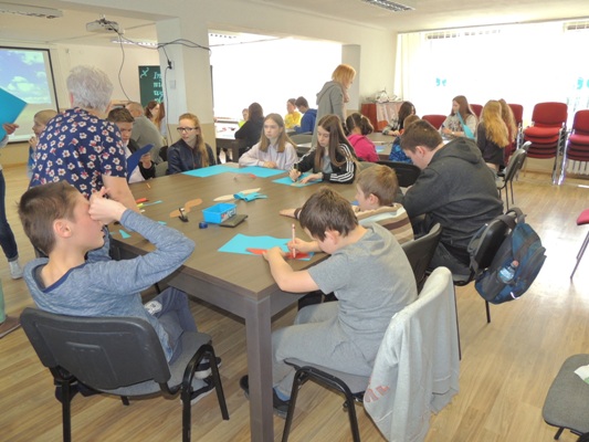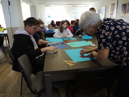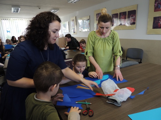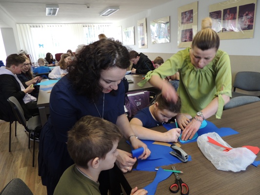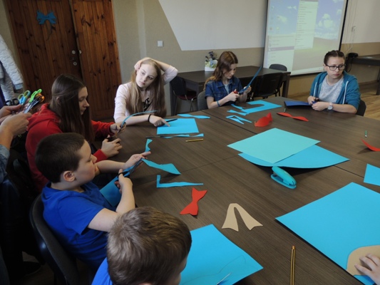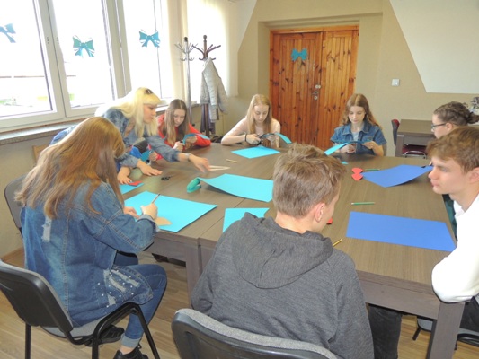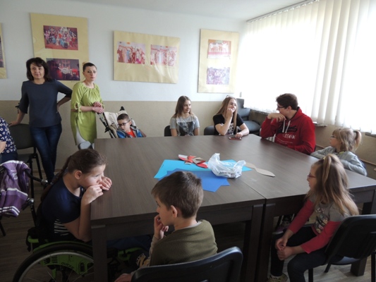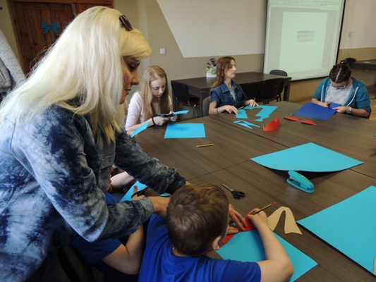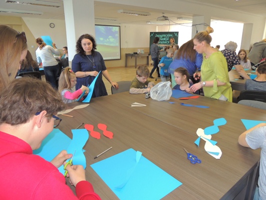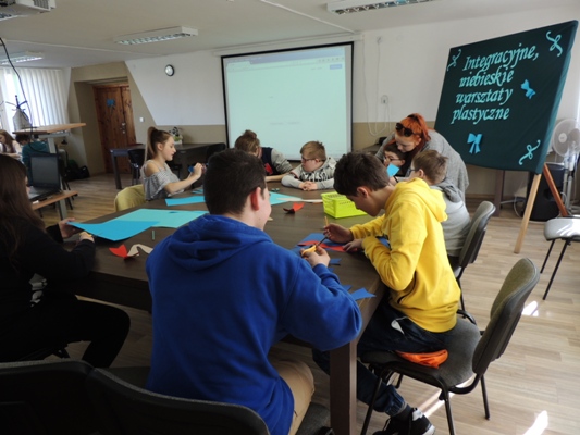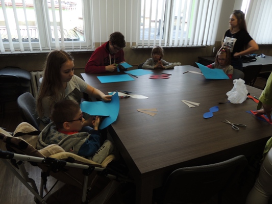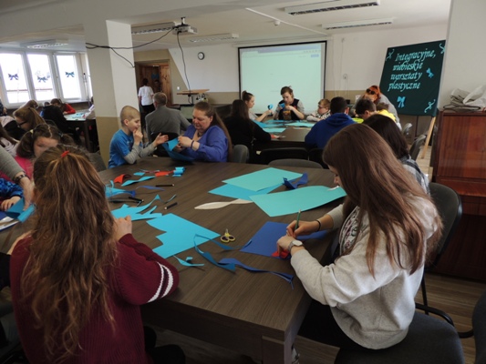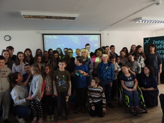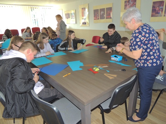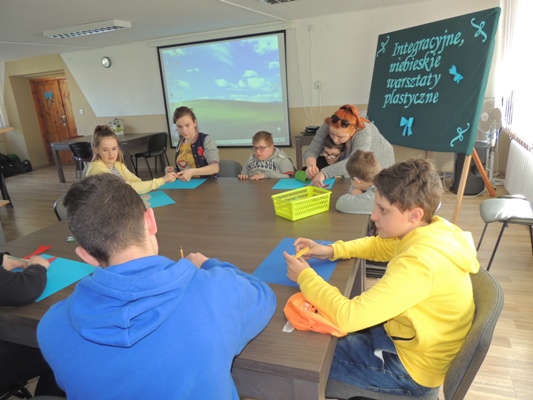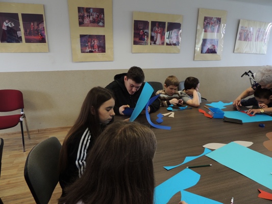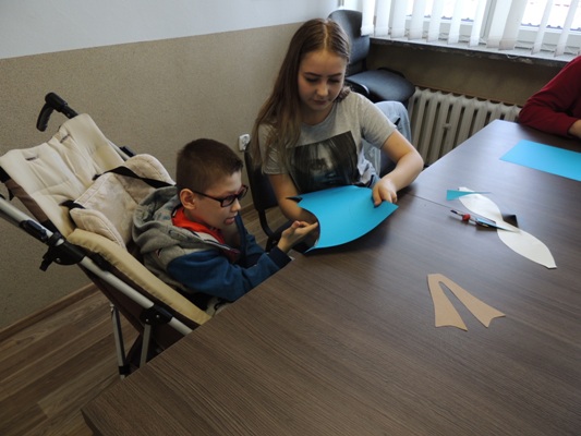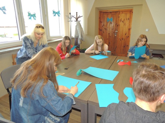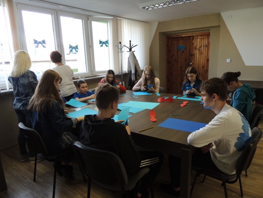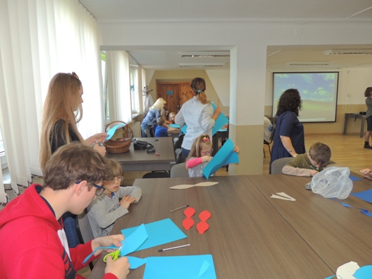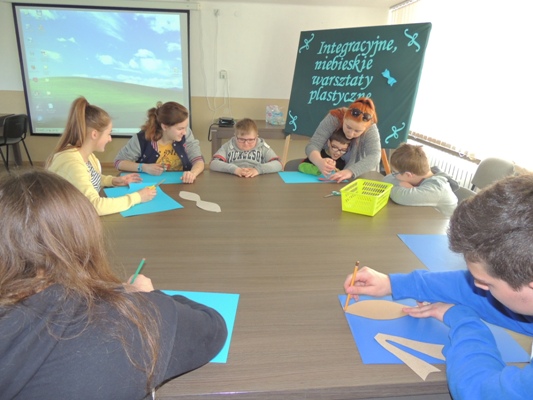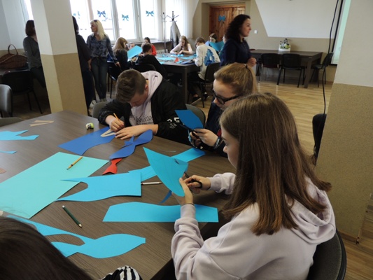 Niebieskimi, integracyjnymi warsztatami plastycznymi rozpoczęliśmy obchody Światowego Dnia Świadomości Autyzmu. Niebieskie kokardki wspólnie z naszymi uczniami wykonywali uczniowie klasy II A Szkoły Podstawowej nr 3 w Hrubieszowie oraz uczniowie klasy II Gimnazjum im. Ks. St. Staszica w Hrubieszowie. Przepięknie wykonane kokardki ozdobiły budynek naszego ośrodka oraz szkoły naszych gości. Wspólnie obejrzeliśmy film opowiadający o codziennym życiu ich rówieśników ze spektrum autyzmu. Słodkie, niebieskie ciasteczka był nagrodą za wspólne świętowanie.