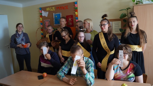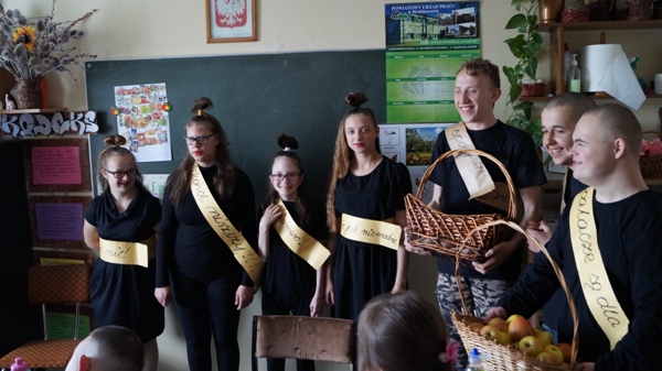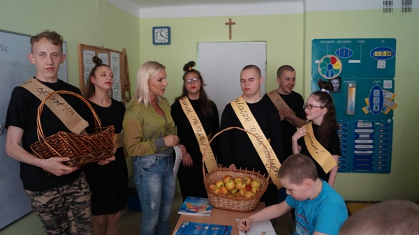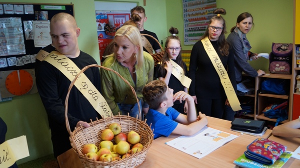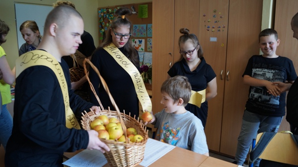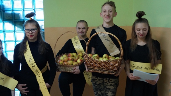 W poniedziałek do naszych uczniów zawitali niecodzienni goście. Przedstawiając zalety zdrowego stylu życia wolnego od nałogów, częstując pysznymi jabłuszkami zaprosili do udziału w konkursie plastycznym pod hasłem „Powiedz NIE!!!”. Celem konkursu jest: