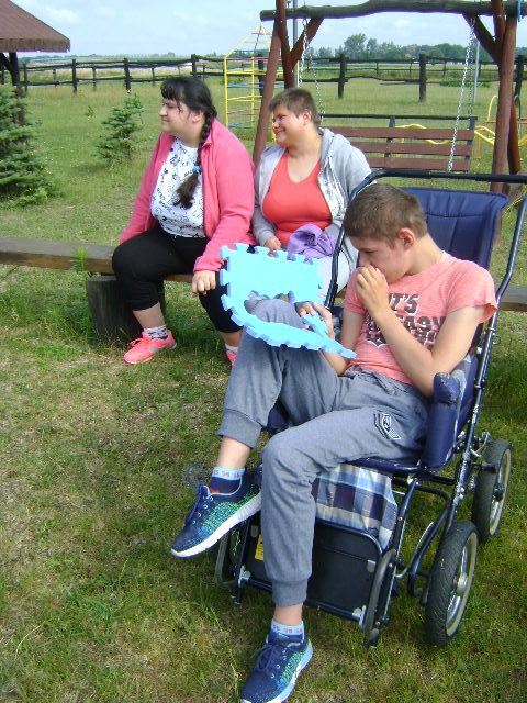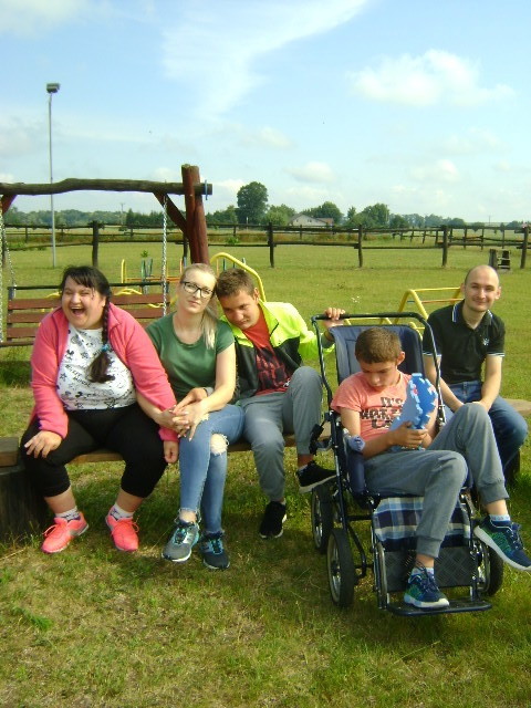 W dniu 15.06.2018 roku odbyła się wycieczka trzech zespołów rewalidacyjno – wychowawczychdo Teptiukowa. Celem jak też założeniem programowym wyjazdu była integracja zespołów z przewidzianymi atrakcjami i zabawą na świeżym powietrzu, podsumowująca jednocześnie pracę za bieżący rok szkolny. W wyjeździe uczestniczyło 16 osób a w tym reprezentanci rodziców każdego z zespołu. Kiedy dojechaliśmy już do punktu docelowego piekliśmy kiełbaski na grillu, korzystaliśmy z atrakcji udostępnionych przez organizatora, uczestniczyliśmy w zabawach i grach ruchowych. Największą atrakcją była możliwość oglądania koni, głaskania ich, możliwość podania im siana. Radości i uciechom wychowanków nie było końca. Wszyscy znakomicie się bawili, dzieci były bardzo zadowolone, pogoda sprzyjała a my podsumowaliśmy rok pracy, który już praktycznie za nami.Wróciliśmy też z głowami pełnymi pomysłów na rok kolejny. Mamy tylko nadzieję, że uda nam się je zrealizować bo są naprawdę twórcze i innowacyjne.