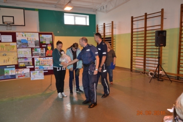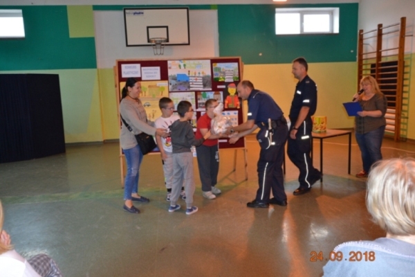 Uczniowie naszego ośrodka spotkali się z funkcjonariuszami Komendy Powiatowej Policji by porozmawiać o zasadach bezpieczeństwa. Panowie zwrócili szczególna uwagę na zasady bezpiecznego poruszania się w drodze do szkoły oraz przypomnieli naszym uczniom wszystkie zasady bezpiecznego zachowania w różnych sytuacjach. Funkcjonariusze wręczyli również nagrody laureatom konkursu plastycznego pt. „Bezpieczna droga do szkoły”.