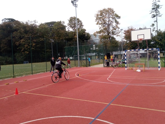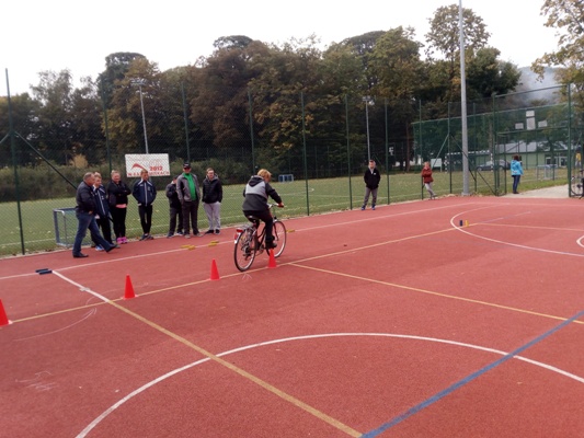 - Przejazd trasa o długości 7 kilometrów w trakcie której uczniowie odpowiadali na pytania z przepisów ruchu drogowego, pierwszej pomocy oraz budowy roweru.