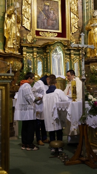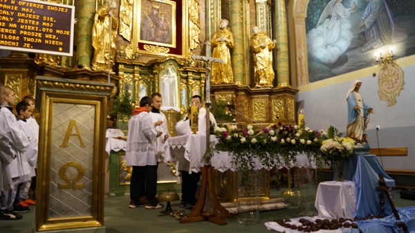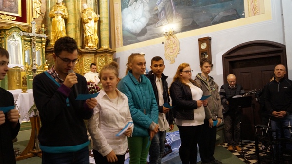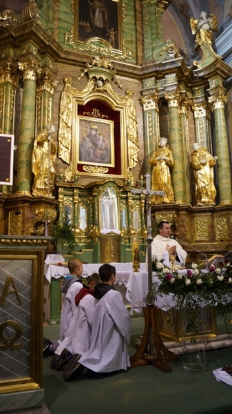 Początek nowego roku szkolnego oraz zbliżający się Dzień Nauczyciela stały się okazją byśmy w piątek, w szczególnym dniu wspomnienia w Kościele świętej siostry Faustyny, uczestniczyli w uroczystej Mszy Świętej. Uczniowie przygotowali piękną oprawę liturgiczną. Ksiądz Grzegorz w słowie skierowanym do nas zwrócił szczególną uwagę na moc modlitwy różańcowej. Życzył uczniom powodzenia w szkolnych obowiązkach, a nauczycielom satysfakcji z wykonywanej pracy. Umocnieni łatwiej sprostamy codziennym wyzwaniom.
