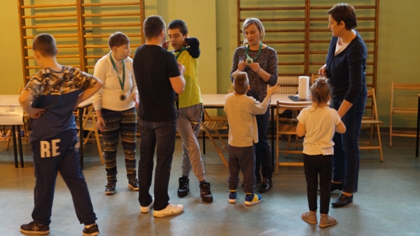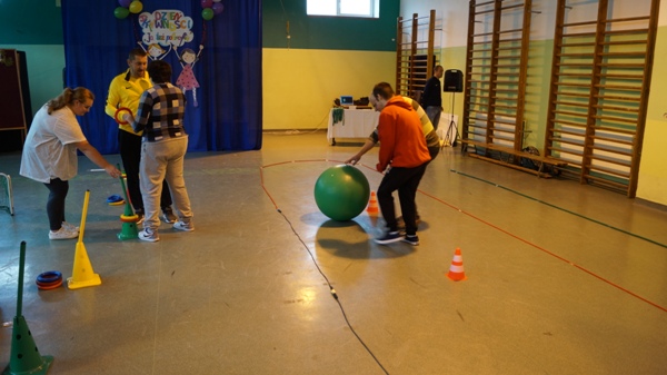 W dniu 10 października 2018 r. odbyła się realizacja projektu "Dzień Aktywności - Ja też potrafię". Uczestnikami zadania byli wychowankowie Zespołów Rewalidacyjno-Wychowawczych z Ośrodków Szkolno-Wychowawczych w Dorohusku i Hrubieszowie oraz drużyny z Ośrodków Rehabilitacyjno - Edukacyjno - Wychowawczych w Zamościu i Tomaszowie Lubelskim. Celem spotkania była chęć stworzenia dzieciom i młodzieży nowych doświadczeń poprzez zabawy ruchowe, twórczą ekspresję oraz integrację z rówieśnikami i opiekunami. Pokazaliśmy również, że dzieci z niepełnosprawnością intelektualną także potrafią aktywnie uczestniczyć w życiu społecznym i z twórczym zapałem podjąć się wykonywania ciekawych, a niekiedy skomplikowanych zadań.