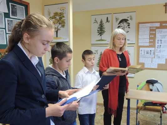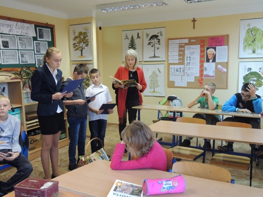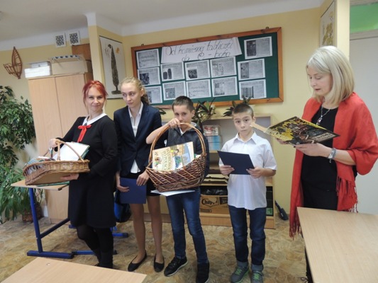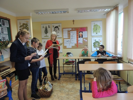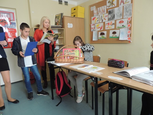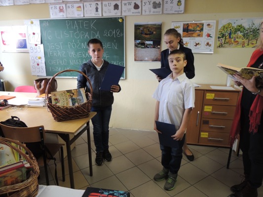"Książki radość dają tym, co je czytają". 16.11.2018 r. w naszej szkole odbyła się inauguracja akcji "Szkolne czytanie", której celem jest propagowanie czytelnictwa wśród dzieci i młodzieży. Grupa uczniów pod kierunkiem p. Iwony Panasiewicz i p. Cecylii Mydlak przeszła po klasach z krótką prezentacją, na którą złożyło się czytanie z podziałem na role „Legendy o królowej Jadwidze", recytacja wierszy oraz zagadki dotyczące popularnych postaci z baśni i legend. Każdy uczeń mógł wypożyczyć wybraną lekturę, bo na prezentację zostały przyniesione ciekawe, kolorowe książki z naszej biblioteki. Tym razem wyjątkowo biblioteka "przyszła" do uczniów. Okazało się, że książki cieszą się dużym powodzeniem. Oby zapał do czytania trwał jak najdłużej. Życzymy wszystkim miłych wrażeń płynących z lektury. Do zobaczenia w kolejnych klasach!