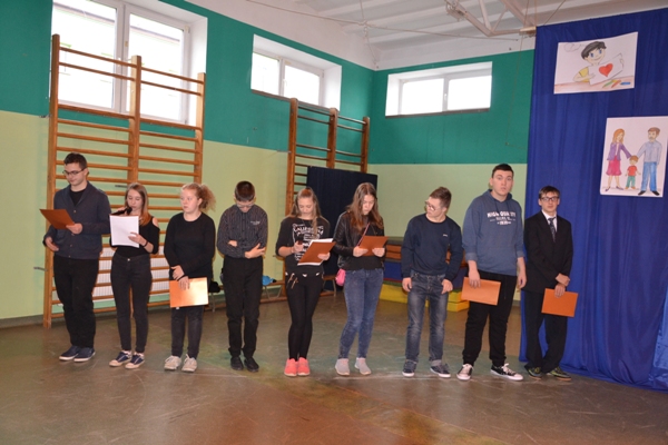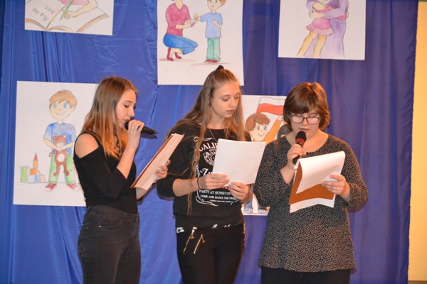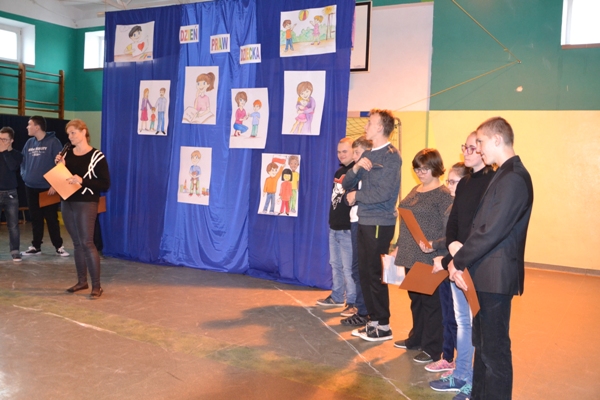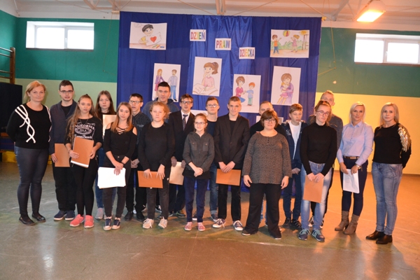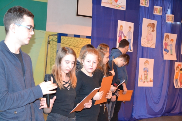 22 listopada w naszej szkole obchodzony był Międzynarodowy Dzień Praw Dziecka. W kartach kalendarza jest to bardzo szczególny i ważny dzień dla wszystkich dzieci, bowiem w listopadzie a dokładnie 20 listopada obchodzony jest Międzynarodowy Dzień Praw Dziecka. Pomimo, iż jest to nowe święto, bo ustanowione przed 4 laty, to dotyczy fundamentalnych praw wszystkich dzieci, bez względu na pochodzenie, kolor skóry czy wyznanie. Z tej okazji uczniowie klas VII- VIII SP, III Gimnazjum wraz z Samorządem Uczniowskim przygotowali krótki montaż słowno – muzyczny, w którym przedstawili najważniejsze prawa jakie im przysługują jako najmłodszym obywatelom naszego państwa.
