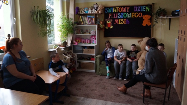 W przeddzień w świetlicy szkolnej odbyły się zajęcia prowadzone przez panią Marię Hukowską – Najko związane ze świętem Pluszowego Misia. W czasie zajęć powstały wizerunki milutkich misiów, którymi ozdobili sale lekcyjne. Były tez łamigłówki, malowanki, układnki. Uczniowie poznali zabawne przygody bajkowych misiów jak również historię święta przemiłego pluszaka.