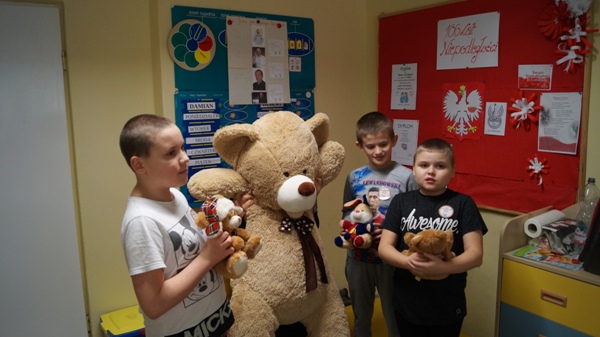 W piątek w naszej szkole świętowaliśmy Dzień Pluszowego Misia. Uczniowie przybyli na zajęcia w towarzystwie swoich pluszowych przyjaciół. Niektóre misie zasiadły w ławkach i zabrały się do pracy, niektóre sprawiły, że w szkole zrobiło się bardziej kolorowo a wszystkie zachęcały by się do nich mocno przytulić. Właściciele przytulanek otrzymali pamiątkowe emblematy oraz słodkości.