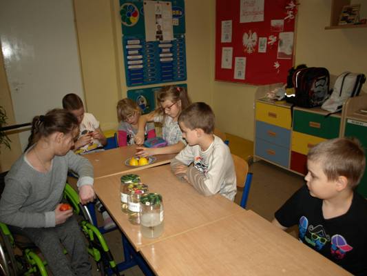 Dla uczniów klasy III treści będące przedmiotem zadania nie były obce. Znały rolę wody w prawidłowym funkcjonowaniu organizmu człowieka, słyszały już na edukacjach o znaczeniu wody w życiu roślin i zwierząt. Jednakże nie miały nawyku picia wody. Dzięki realizacji tego zadania miały okazję ćwiczyć uważne słuchanie oraz dokonywać analizy treści. Przeprowadzone zostały zajęcia według scenariusza ,,Woda na zdrowie”, które zakończyły się pracą domową rozdaniem karty pracy.