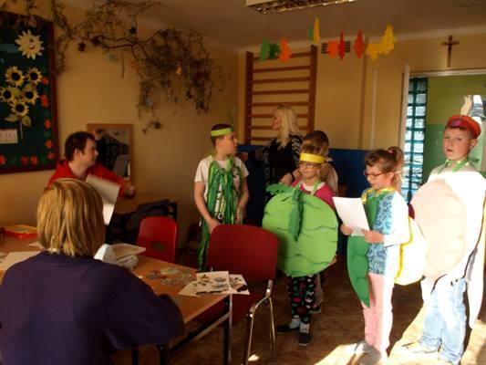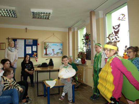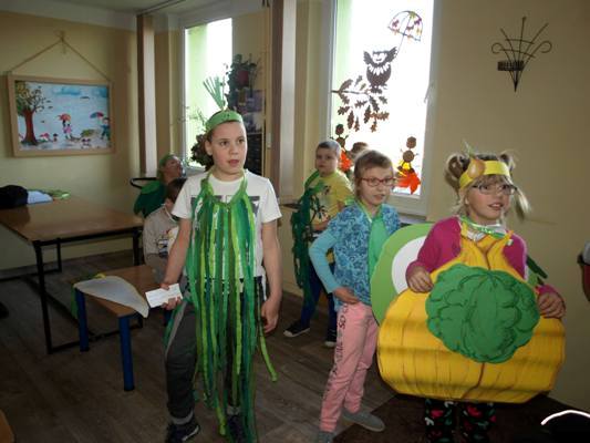Dnia 27 listopada 2018 r. uczniowie klasy trzeciej i drugiej w celu zrealizowania kolejnych zadań projektu ,,Zdrowo jem, więcej wiem” zaprezentowali swoim kolegom inscenizację ,,Na straganie” na podstawie wiersza Jana Brzechwy. Następnie wzięli udział w promocji zdrowej żywności w szkole. Odwiedzili zespoły rewalidacyjno - wychowawcze oraz przedszkolaki. Podczas promocji z gracją prezentowali warzywne stroje i odśpiewali piosenkę o ogórku. Stroje do przedstawienia uczniowie wykonali pod opieką pani Anny Jańczuk. Opiekunowie klas serdecznie dziękują za pomoc.