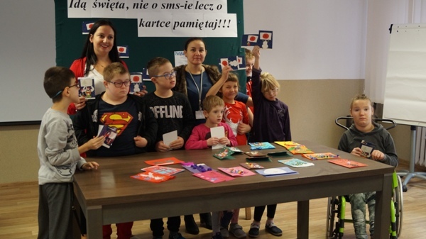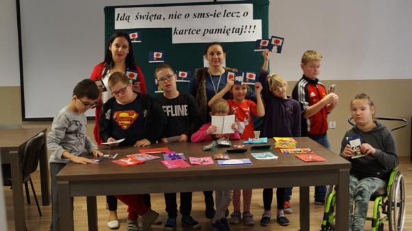 Uczniowie na początku grudnia otrzymali świąteczne kartki, wydane przez ww. fundację, które należy wypisać i zaadresować do osoby samotnej lub chorej i następnie wysłać za pośrednictwem poczty lub wręczyć osobiście. DLACZEGO WYSYŁANIE KARTEK JEST WAŻNE: