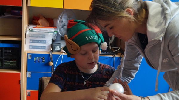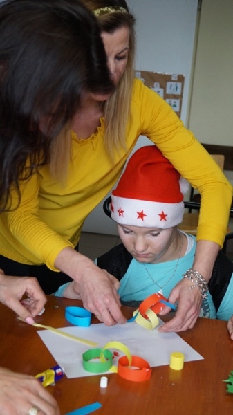 11.12.2018 r. nauczyciele naszego ośrodka uczestniczyli w zajęciach otwartych prowadzonych przez panią Sylwię Studzińską w świetlicy szkolnej na temat „Choinki blask i magia świąt”. Celem zajęć było wyzwolenie radości z powodu zbliżających się świąt oraz ozdobienie choinki. Zajęcia rozpoczęły się rozmową na temat tradycji Świąt Bożego Narodzenia. Prowadząca przygotowała różnorodne akcesoria dekoracyjne oraz materiały do przygotowania ozdób choinkowych. Wspólne wykonanie ozdób oraz dekorowanie drzewka zbliżyły do uczniów do siebie. Dzieci słuchały kolęd i pastorałek. Na zakończenie podzieliły się opłatkiem życząc wszystkim uczestniczącym w zajęciach Wesołych Świąt”. W czasie omówienia zajęć nauczyciele wymienili się doświadczeniami na temat stosowanych metod oraz umiejętności wprowadzania odpowiedniego nastroju przez nauczyciela podczas zajęć przysposobienia do pracy.