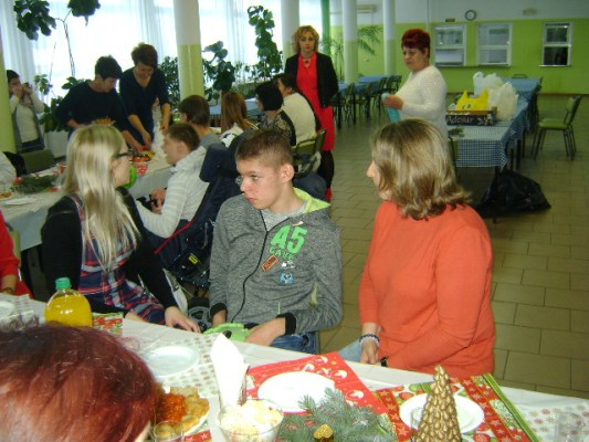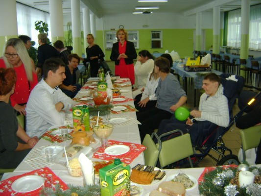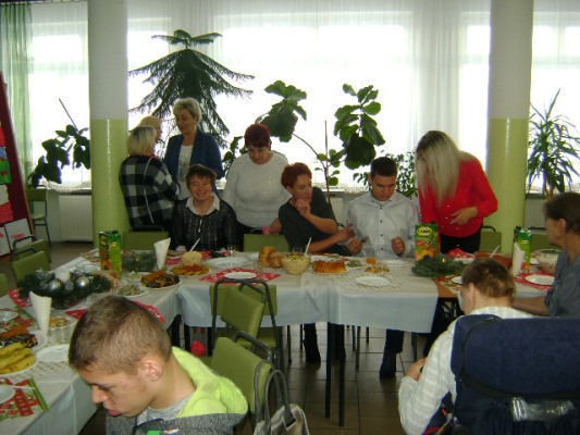 Przeżywając radość z Narodzenia Zbawiciela oraz wpatrując się w pokój i ciszę Betlejemskiej Groty mogliśmy i w tym roku w dniu 21 grudnia wzniośle przeżywać uroczystą wieczerzę wigilijną w zespołach rewalidacyjno – wychowawczych. Było to dla nas wyjątkowe i niepowtarzalne wydarzenie, podczas którego zostało odczytane Słowo Boże. Podczas wspólnej wieczerzy i towarzyszącej jej świątecznej atmosfery dzieliliśmy się opłatkiem, śpiewaliśmy kolędy a także przeżywaliśmy radość z rodzącego się niebawem Chrystusa.