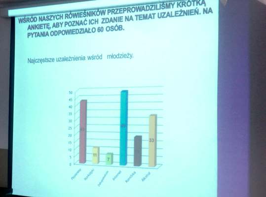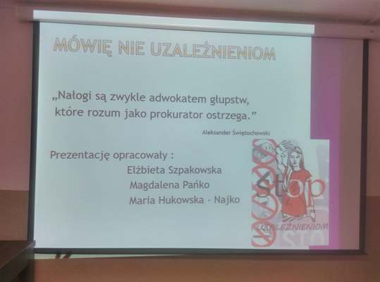5 lutego odbyła się akademia profilaktyczna: "Stop nałogom". Miała na celu zwiększenie oddziaływań profilaktycznych związanych z używkami. Została przedstawiona prezentacja multimedialna dotycząca rodzajów uzależnień i ich skutków. Pokazała, że to jak będzie wyglądało nasze życie zależy tylko od nas.