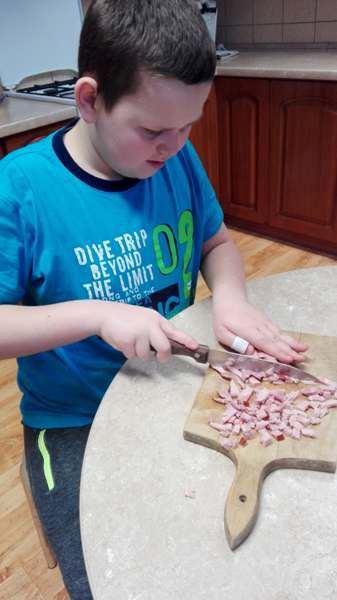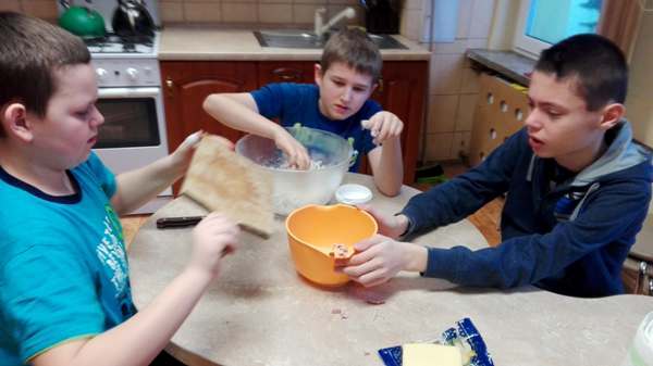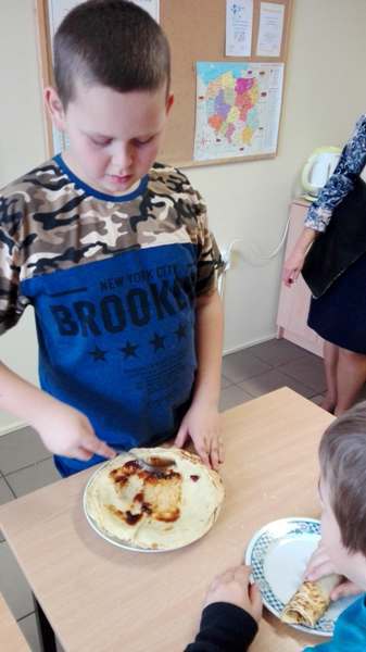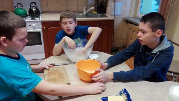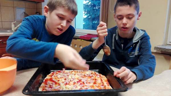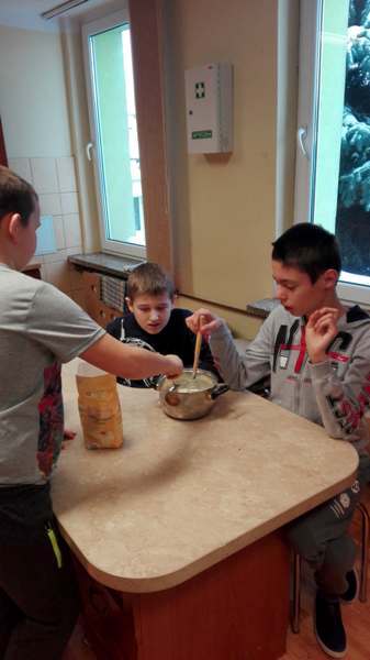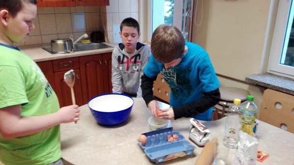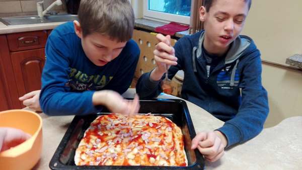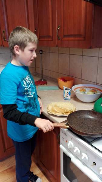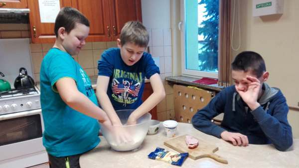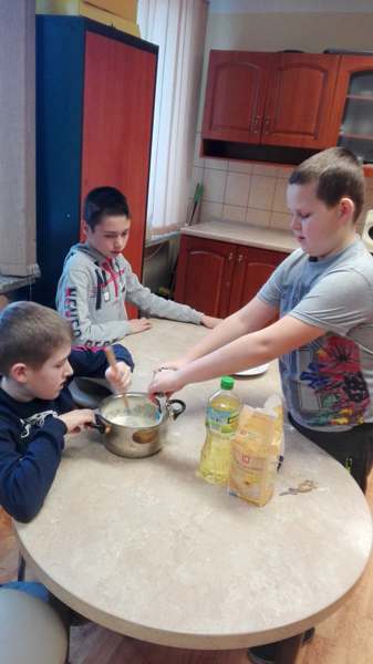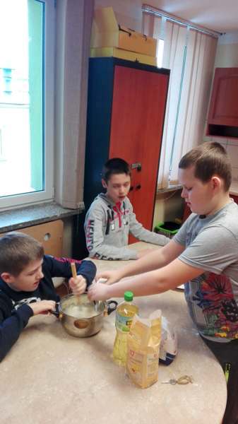 Uczniowie klasy V pu chętnie uczestniczą w zajęciach kulinarnych przygotowując smaczne potrawy oraz desery. Zaangażowanie dzieci jest ogromne, chętnie wykonują wszystkie potrzebne czynności podczas przygotowania potraw. Największą radość sprawia młodym kucharzom to, że mogą wykonywać ciekawe zadania samodzielnie oraz to, że dania smakują wyśmienicie. W swoim menu maja pizzę, naleśniki, sałatki, ciasta, a na tłusty czwartek przygotowali przepyszne pączki z dziurką. Szkolne łasuchy mogły skosztować tych smakołyków.