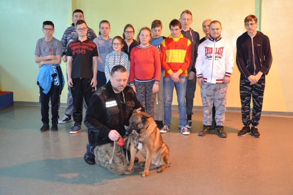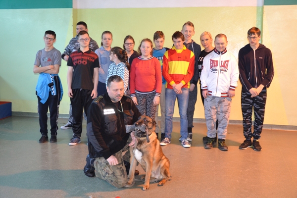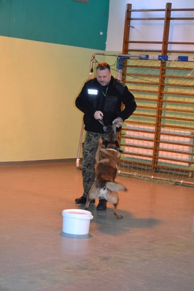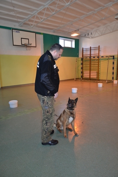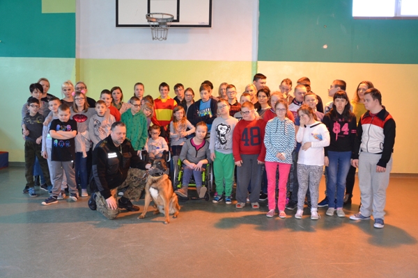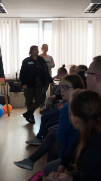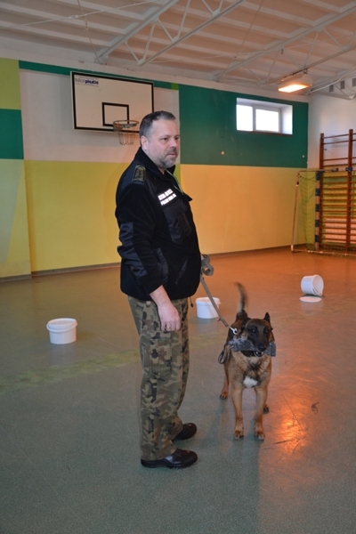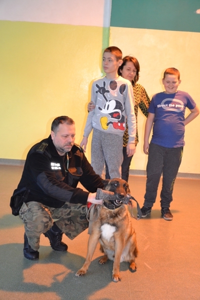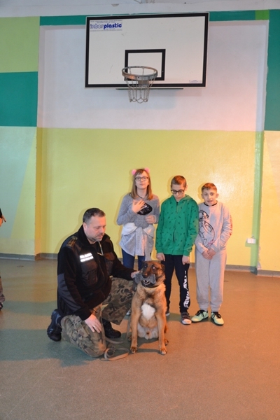 28 lutego 2019 r. uczniowie naszej szkoły spotkali się z Funkcjonariuszami Placówki Straży Granicznej w Hrubieszowie. Młodzież uczestniczyła w spotkaniu z panią sierż. szt. SG Kornelią Berchard, która omówiła trudny i bardzo ważny temat „Handel ludźmi”. Młodsi uczniowie mieli okazję zobaczyć pokaz wykrywania wyrobów tytoniowych, przez psa do zadań specjalnych, przygotowany przez pana chor. szt. SG Sławomira Czerkawskiego. Dzieci posłuchały o tym jak specjalnie szkolone psy wspomagają pracę funkcjonariuszy straży granicznej. Gost chętnie pozował do pamiątkowych zdjęć.