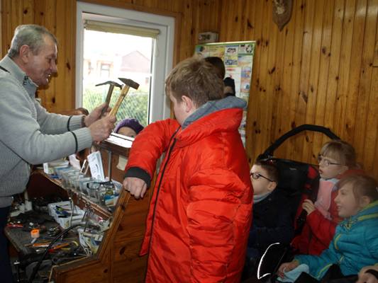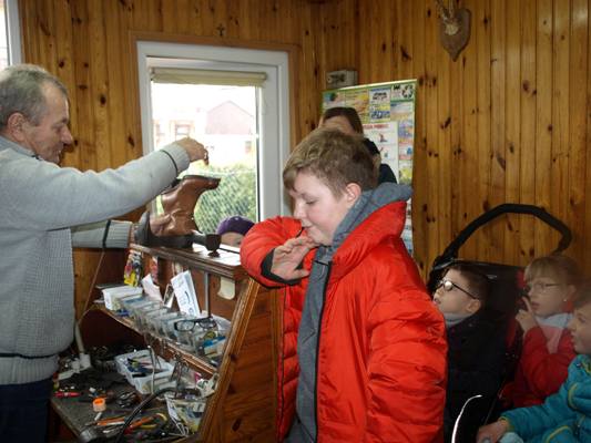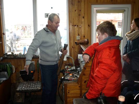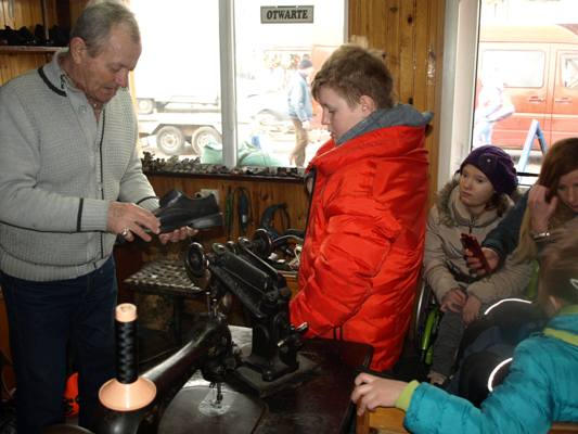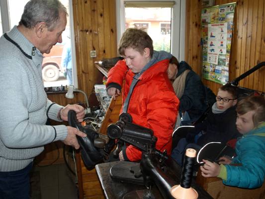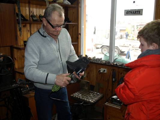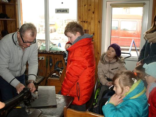 4 marca 2019 r. klasy II – III SP w ramach edukacji społecznej zetknęły się z rzemiosłem o wielkich tradycjach, z zawodem polegający na naprawie i tworzeniu obuwia czyli z szewstwem. Dawniej zawód bardzo opłacalny, nobliwy. Współcześnie szewc to zawód zanikający, ponieważ większość butów jest wykonywana w fabrykach. W sali lekcyjnej uczniowie uczyli się sznurować obuwie i wchodzili w rolę szewca, klienta. Później uczniowie odwiedzili malutki ale klimatyczny zakład szewski czeladnika Pana Leszka Szendraka przy ul. Ludnej w Hrubieszowie. W bardzo atrakcyjny sposób właściciel zakładu zapoznał uczniów z atrybutami tradycyjnego szewstwa ręcznego. Pan Leszek pokazał uczniom większość z narzędzi, z których korzysta na co dzień np.: cęgi, raszpla (duży pilnik), kopyto trójramienne, młotki do wbijania fleków, stalek, prawidła, szpilarek (ostra szpila z rękojeścią ,,lala”), ostry nożyk knyp, maszyna do szycia kamaszy, maszyna do rozciągania obuwia, polerki elektryczne. Uczniowie poznali także materiały do renowacji obuwia np. płyta flekowa, klamerki do zamków, kołki. Z zainteresowaniem uczniowie słuchali Pana Leszka jak opowiadał o swojej pasji (kolekcjonuje małe buciki), o pierwszych krokach stawianych w zawodzie oraz o rodzinnej tradycji czeladniczej. Szewcem był Tata Pana Leszka cenił sobie pracowitość, dokładność, precyzję, zręczność, starał się przekazać te cechy kolejnemu pokoleniu. Obecnie Pan Leszek, syn są szewcami i mają swoje zakłady, cieszą się stałą klientelą. W atmosferze szczerej pracy uczniowie mieli okazję po krótce poznać etapy zmiany fleków w zużytym obuwiu. Przyjrzeli się sprawnemu wycinaniu fleków. Uczniowie wykonali kilka pamiątkowych zdjęć a następnie podziękowali panu Leszkowi za poświęcony czas i obdarowali upominkiem z życzeniami pomyślności i zdrowia. W drodze do szkoły dzielili się swoimi uwagami i spostrzeżeniami, wyrazili swój szacunek dla pracy. Przyczynkiem do działania jest realizowana w szkole innowacja pedagogiczno - programowa w klasach młodszych "Przez zabawę w codzienności do dorosłości”.