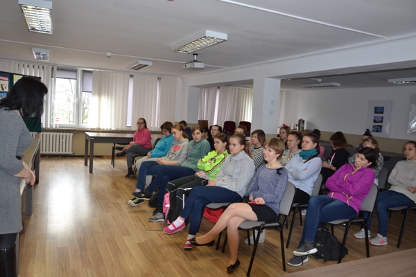Uczennice starszych klas naszej szkoły spotkały się z położną panią Ewą Kuźmińską, która od kilku lat odwiedza nasz Ośrodek z prelekcją na temat zdrowia młodej kobiety oraz zagadnień związanych z higieną i okresem dojrzewania. Tegoroczne spotkanie odbyło się w wyjątkowym dniu – Dniu Kobiet, pod stałym hasłem „Miedzy nami kobietami”. Dziewczęta z zainteresowaniem wysłuchały pani Ewy, zadawały pytania, dyskutowały. Na koniec spotkania otrzymały materiały informacyjne oraz ulotki na temat badań profilaktycznych do przekazania mamom. Uczestniczki spotkania odwiedził pan dyrektor Lech Jurczuk i przekazał najserdeczniejsze życzenia oraz kosz słodkości.