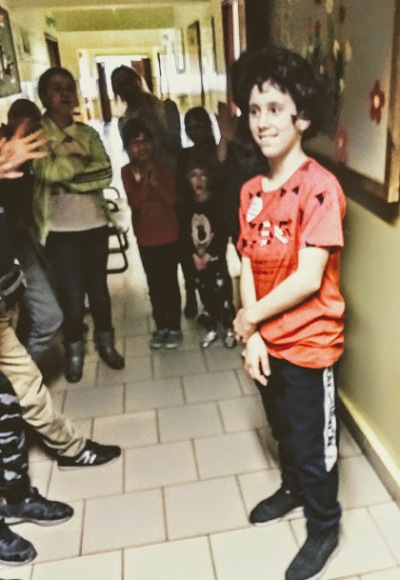 Dziewczęta i chłopcy wyznaczeni do pełnienia ról pani wicedyrektor, wychowawców oraz pracowników obsługi mieli możliwość w sposób humorystyczny przedstawić sylwetki zastępowanych osób.