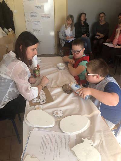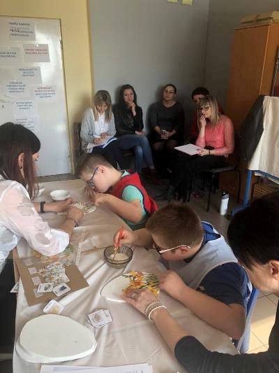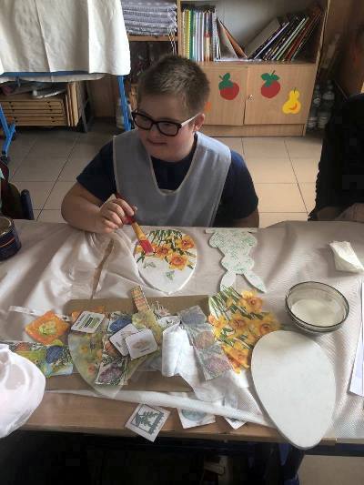 20 marca 2019 r. w kl. II PU odbyły się zajęcia otwarte dla nauczycieli pod tytułem „Ozdoby wielkanocne” przeprowadzone przez Izabelę Duławską - Kula. Uczniowie podczas zajęć rozwijających kreatywność – ozdabiali przedmioty techniką decoupage. Samodzielnie przygotowali stanowisko pracy, prosili o pomoc w razie potrzeby. Nauczyciel dostosował tempo pracy do możliwości uczniów, wspierał się komunikacją alternatywną, reagował na potrzeby uczniów.