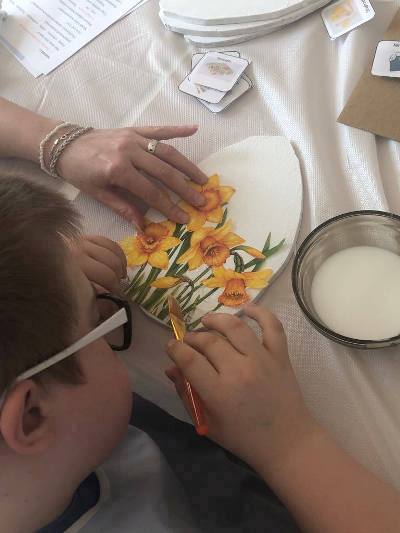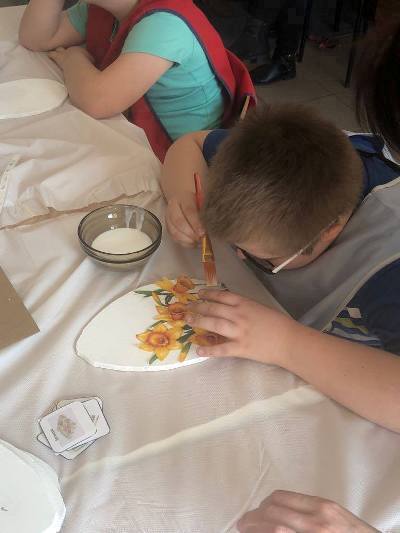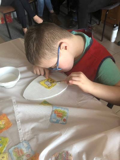 Podczas zajęć wykazali się: samodzielnością, rozumieniem i znajomością symboli PCS znajdujące się w planie zajęć, rozróżnieniem materiałów potrzebnych do ozdabiania przedmiotów metodą decoupage, umiejętnością proszenia o pomoc, umiejętnością zastosowania materiałów, narzędzi i preparatów stosowanych w technice serwetkowej.