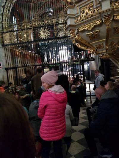 Po zwiedzeniu CSPSP pojechaliśmy w kierunku Jasnej Góry. Zwiedziliśmy Sanktuarium Matki Bożej Częstochowskiej. To był czas na przemyślenia, chwilę refleksji i modlitwy. W drodze powrotnej w miejscowości Olsztyn oglądaliśmy w nieczynnym już kamieniołomie wnętrze wapiennego wzgórza oraz zwiedziliśmy Zamek w Chęcinach. Po udanym i wyczerpującym zwiedzaniu szczęśliwie powróciliśmy do Hrubieszowa.