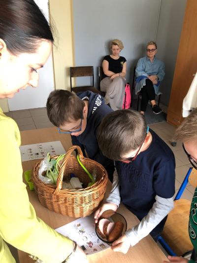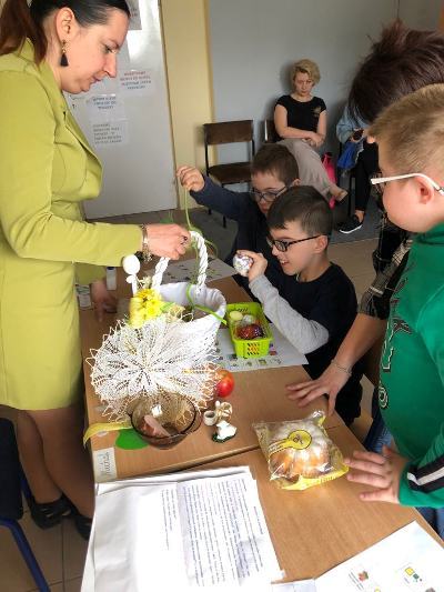 16 kwietnia 2019 r. w klasie II sp odbyły się zajęcia otwarte dla nauczycieli funkcjonowania osobistego i społecznego pt. „Tradycje wielkanocne” przeprowadzone przez Izabelę Duławską-Kula. Celem zajęć było przygotowanie wielkanocnego koszyczka, przybliżenie tradycji Świąt Wielkanocnych, a także usprawnianie kontaktów interpersonalnych i współpracy w grupie.