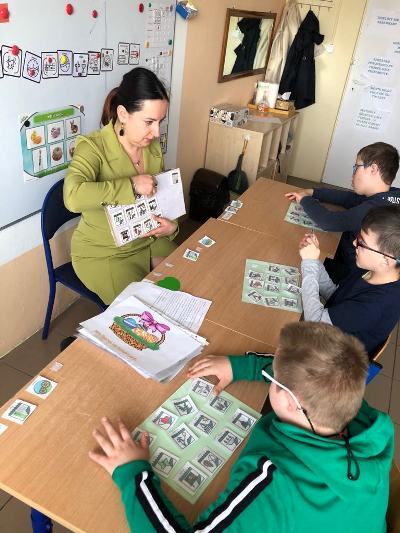 Nauczyciel dostosował tempo pracy do możliwości uczniów, wspierał się komunikacją alternatywną, reagował na potrzeby uczniów, wzmacniał ich pozytywnie. Cele lekcji zostały osiągnięte. Nauczyciele dokonali ewaluacji zajęć, wymienili się swoimi odczuciami z prowadzącym zajęcia nauczycielem.