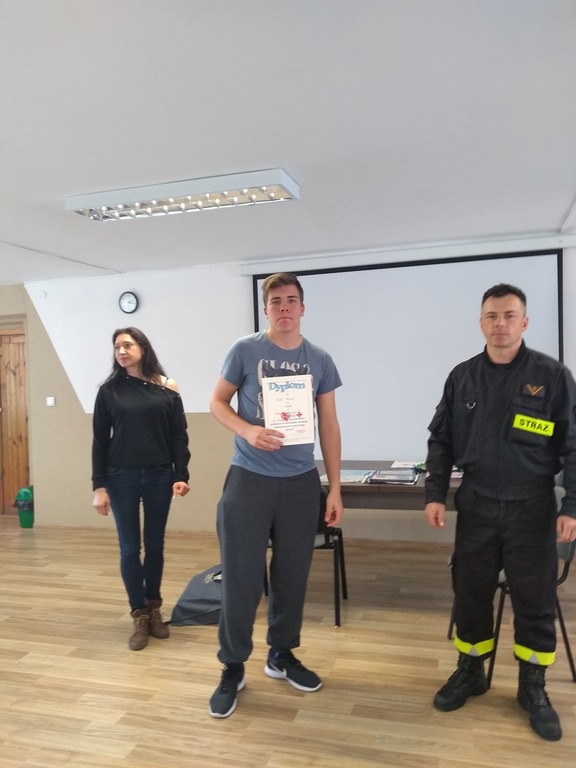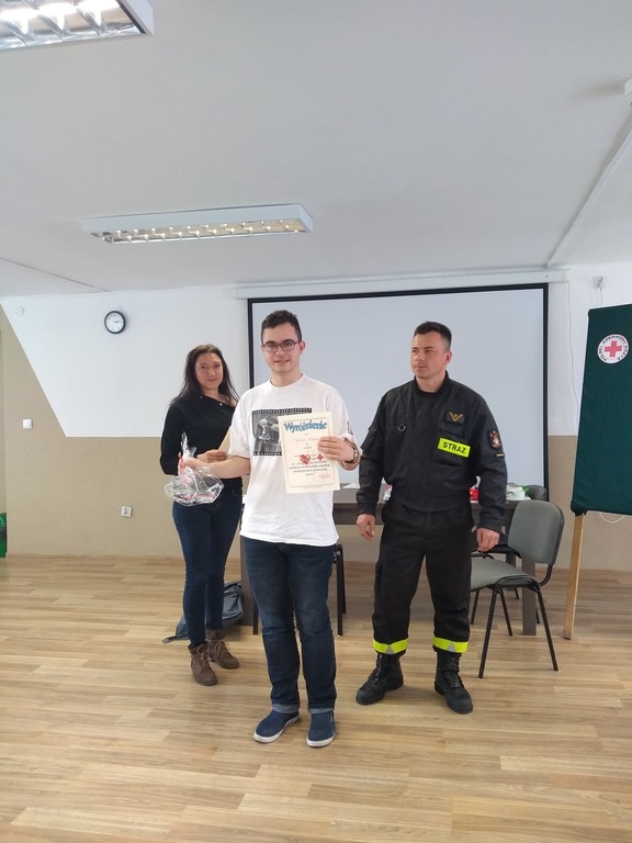 W dniu 17 maja 2019 r. został przeprowadzony konkurs teoretyczno - praktyczny pt: "Uczymy się ratować, podążać w kierunku wiedzy, umiejętności i potrzeby serca". Konkurs odbył się w celu podsumowania cyklicznych spotkań szkoleniowych z pracownikami Powiatowej Państwowej Straży Pożarnej w Hrubieszowie. Uczniowie mieli możliwość sprawdzenia swojej wiedzy i umiejętności w zakresie udzielania pierwszej pomocy przedmedycznej. Komisja w składzie mł.asp. Michał Puszek, Sylwia Studzińska przyznali miejsca i nagrody następującym osobom: