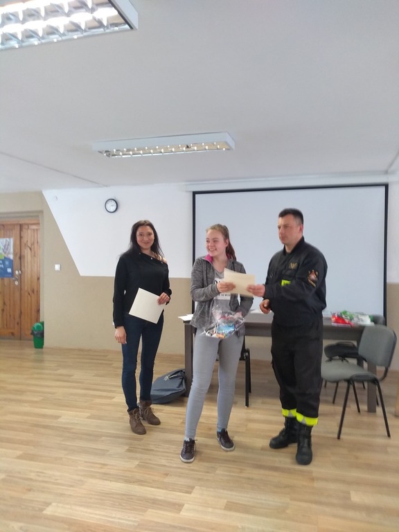 - miejsce I - Anna Pietrycka - dodatkową nagrodą dla uczestniczki jest szkolenie z pierwszej pomocy przedmedycznej zrealizowane przez Pana instruktora PPSP z Hrubieszowa mł. asp. Michała Puszek.