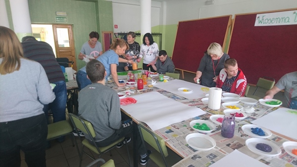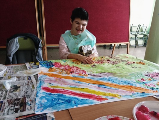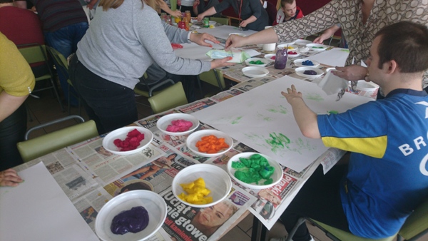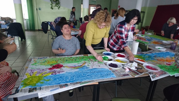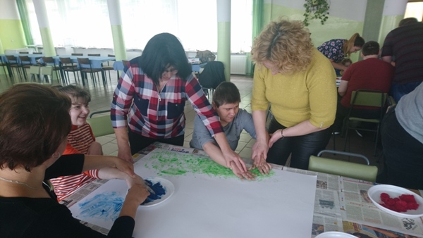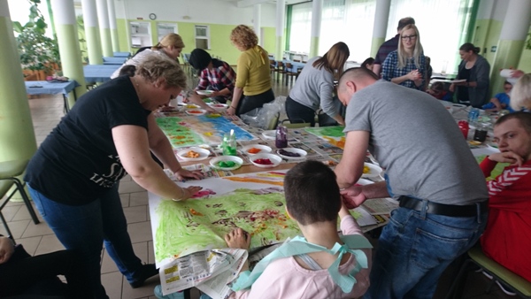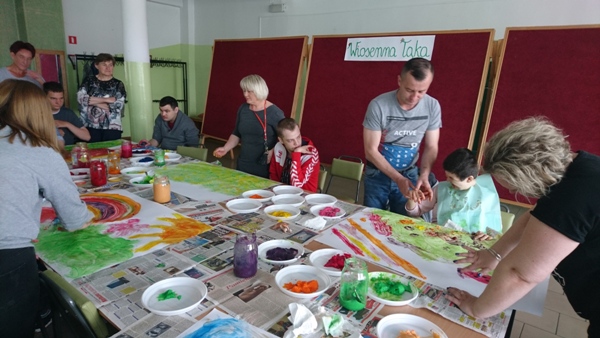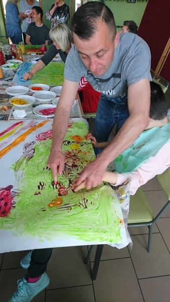 „Wiosenna łąka” pod takim tytułem w dniu 17 maja 2019 r. odbyły się warsztaty plastyczne dla uczniów zespołów rewalidacyjno – wychowawczych oraz ich rodziców. Z niesamowitym zaangażowaniem wykonywały prace plastyczne z wykorzystaniem niecodziennej Metody Malowania Dziesięcioma Palcami.