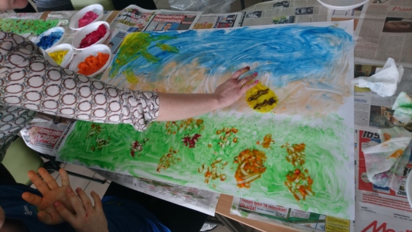 Uczniowie oraz rodzice przed przystąpieniem do pracy zapoznali się z Metodą Malowania Dziesięcioma Palcami oraz posłuchali o Ruth Shaw twórczyni metody. Według niej metoda ta uwalnia dziecko od zahamowań, pokonuje lęk, wzmacnia wiarę w swoje możliwości, pobudza do ekspresji fantastycznej. Podczas malowania za pomocą rąk dzieci miały okazję do rozwijania sprawności manualnej, stymulowania zmysłu czucia. Ćwiczyły też wyobraźnię oraz planowanie wypełniania kolorem przestrzeni.