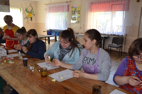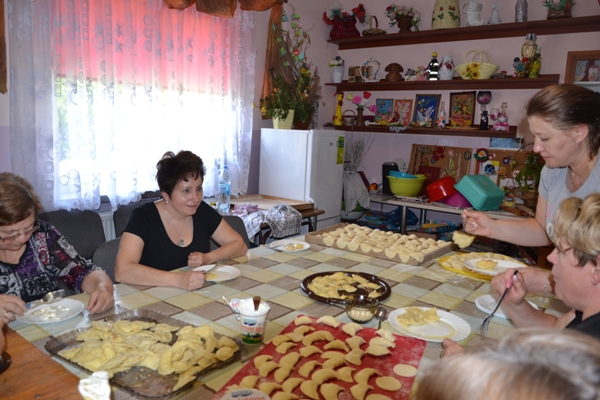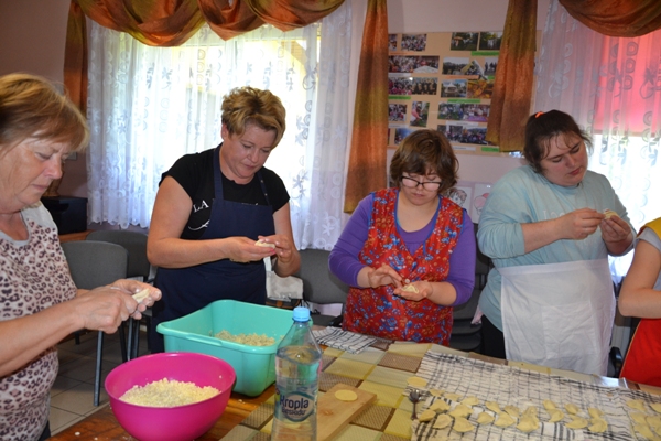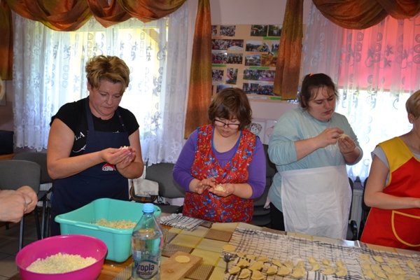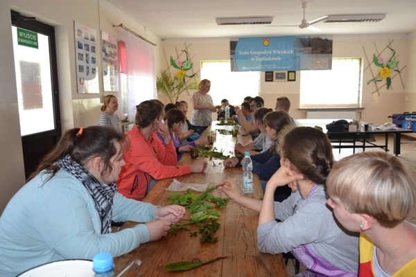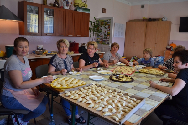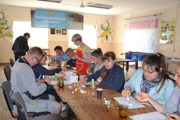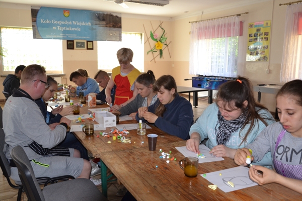 Realizując zadania projektu KREATYWNI I AKTYWNI 27 maja 2019 r. odbyły się międzypokoleniowe warsztaty kulinarne zorganizowane w siedzibie Koła Gospodyń Wiejskich w Teptiukowie. Podczas warsztatów przygotowane zostały tradycyjne dania regionalne: żur staropolski, pierogi w trzech smakach, a na deser czekoladowy budyń z wyśmienitą, domową konfiturą z wiśni. W czasie spotkania nastąpiła integracja międzypokoleniowa oparta na wzajemnym szacunku i podkreślaniu możliwości wykorzystania doświadczenia życiowego naszych gospodyń. W czasie spotkania przeprowadzony został konkurs „Zrobimy to sami”. Młodzież zmierzyła się z praktycznymi zadaniami, w których miała wykazać się umiejętnościami z zakresu rękodzieła, ogrodnictwa, papieroplastyki i kulinariów. Uczniowie wyszywali, prezentowali swoją wiedzę odnośnie roślin oraz tworzyli kartkę ozdobioną elementami quillingu. Wśród zadań było też obieranie Siemiaków na czas oraz samodzielne wykonanie pierogów. Wszyscy pracowali z zaangażowaniem, starając się estetycznie i pomysłowo wykonać polecenia, a nagrodami były słodkie drobiazgi i dyplomy dla wszystkich uczestników.