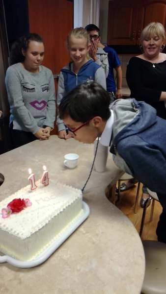 03.10.2019 r. w gronie kolezanek i kolegów z klasy i grupy wychowawczej 14 urodziny świętował nasz kolega Maciek. Gromkie sto lat, ogrom życzeń, przepyszny tort oraz wspólne rozmowy pozwoliły spędzić ten wyjątkowy dzień w cudownej atmosferze. Jubilatowi życzymy spełnienia wszystkich życzeń i najskrytszych marzeń.