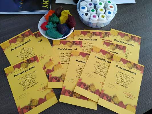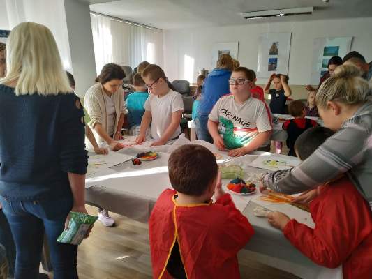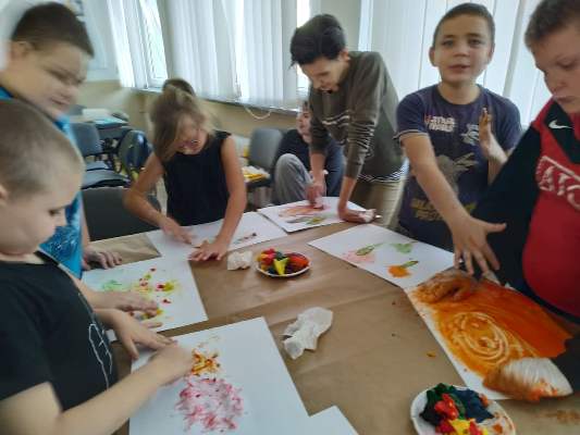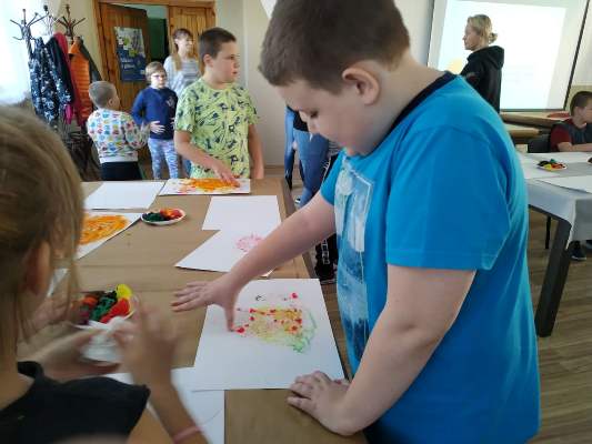 Dnia 22.10.2019 r. (wtorek) o godzinie 9:00 w sali konferencyjnej PZPSW w Hrubieszowie odbyły się integracyjne warsztaty plastyczne metodą Malowania 10 Palcami pt.: ,,Dary jesieni”. Tegoroczne warsztaty zostały przeprowadzone dla uczniów naszej szkoły podstawowej klas I-III oraz przedszkolaków z Niepublicznego Przedszkola ,,Mamy Siebie” w Hrubieszowie.