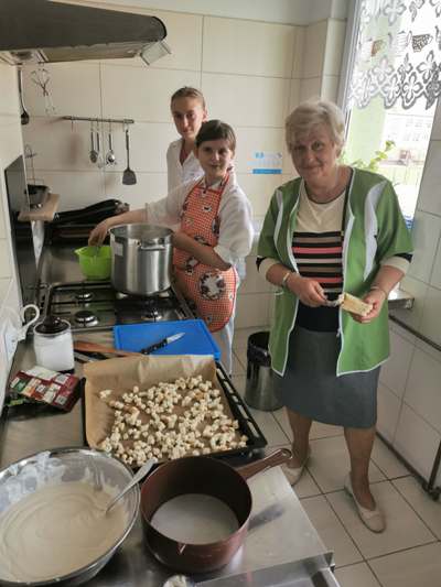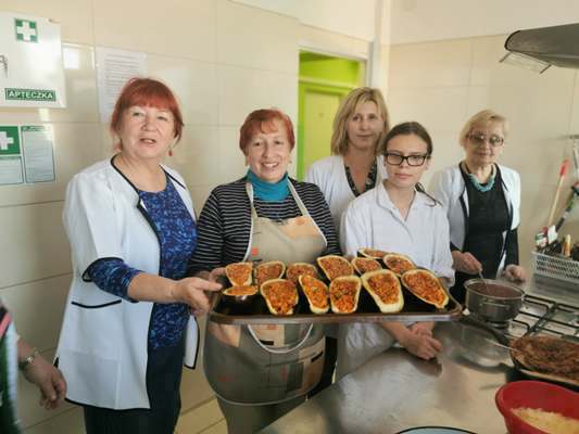 25 października 2019 r. odbyły sie w naszym ośrodku niecodzienne warsztaty kulinarne. Tą wyjątkowość zawdzięczamy naszym emerytowanym nauczycielkom, które przyjęły nasze zaproszenie i wspólnie z uczniami branżowej szkoły zawodowej przygotowały wspaniałe menu. W czasie warsztatów wspominkom nie było końca. Całemu wydarzeniu towarzyszyła przesympatyczna atmosfera spotkania międzypokoleniowego. Serdecznie dziękujemy pani Izie, pani Małgosi, pani Ali i pani Marcie. Było nam niezmiernie miło gościć Panie. Po raz kolejny mogliśmy wykorzystać Wasze doświadczenie i wielką serdeczność.