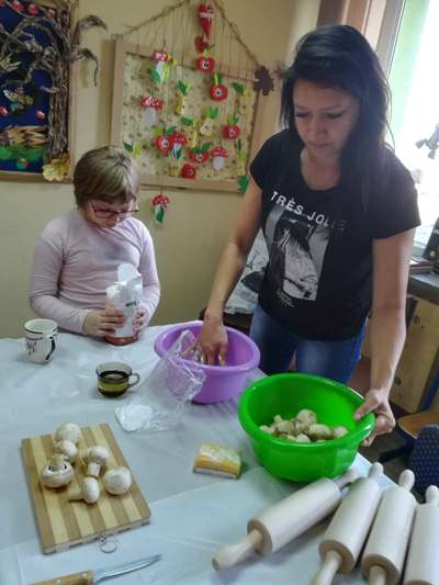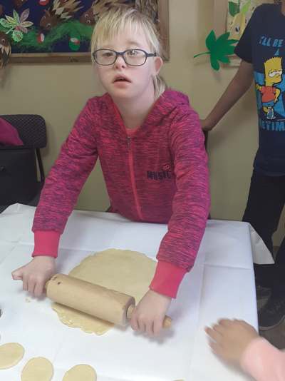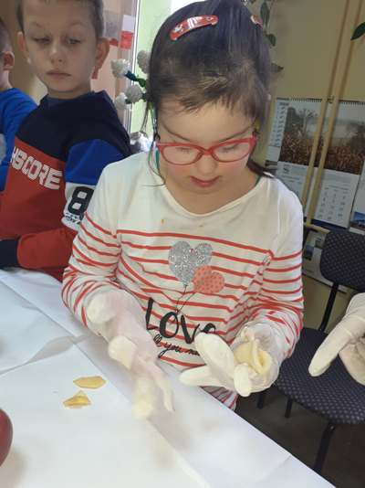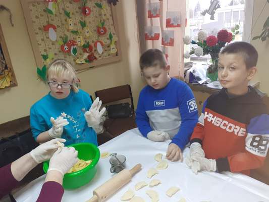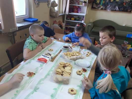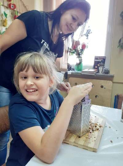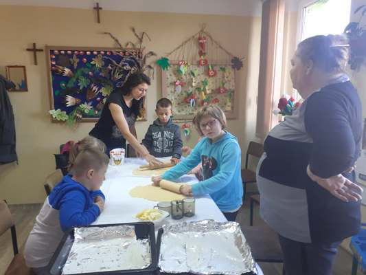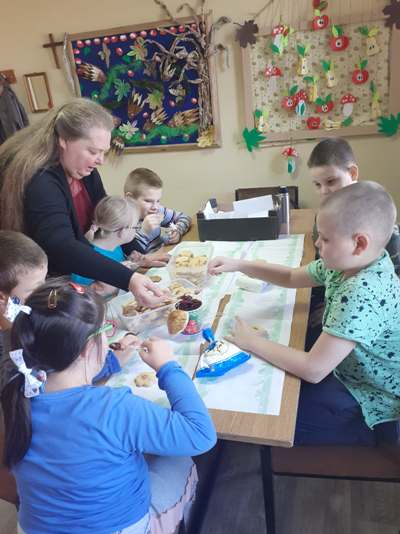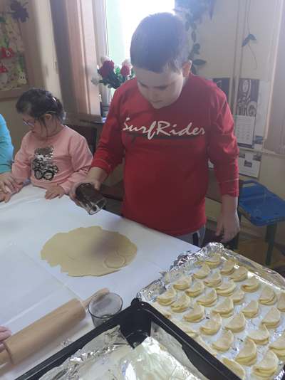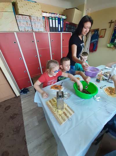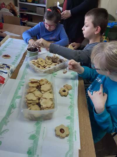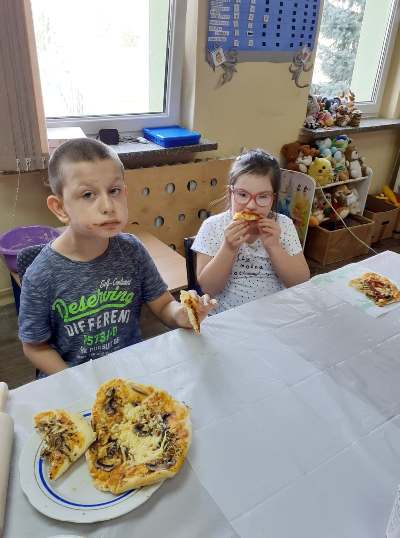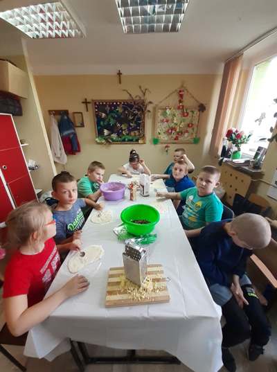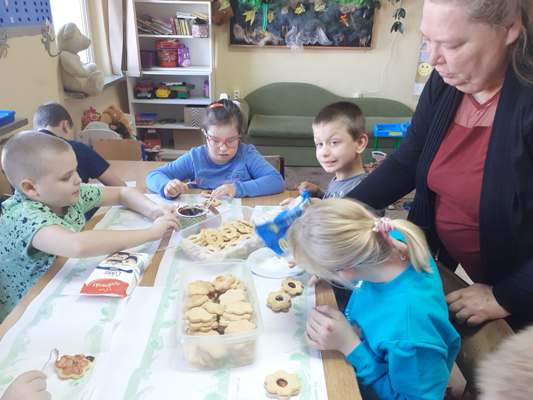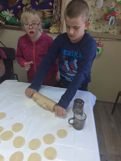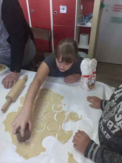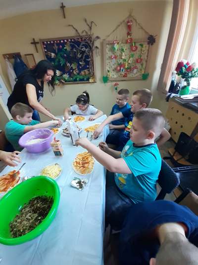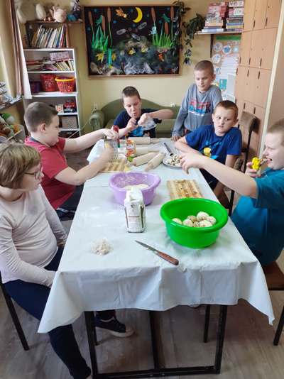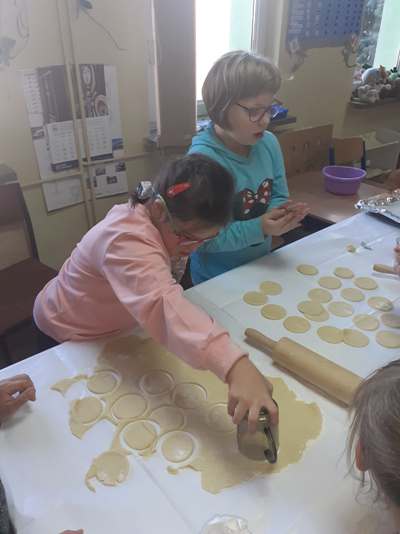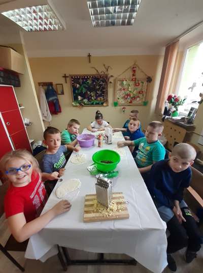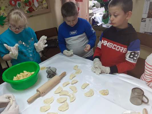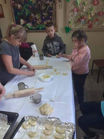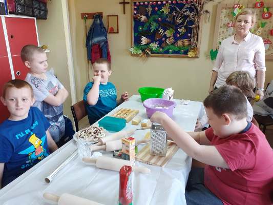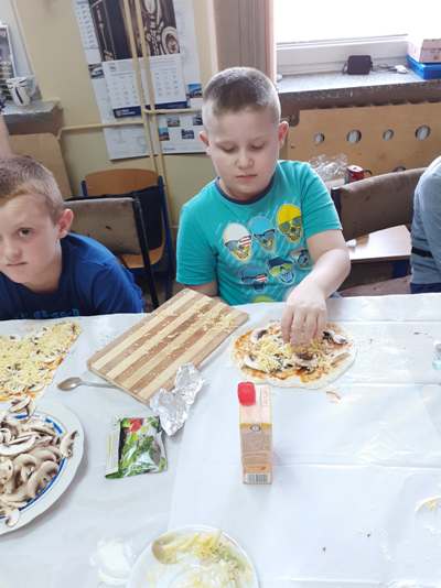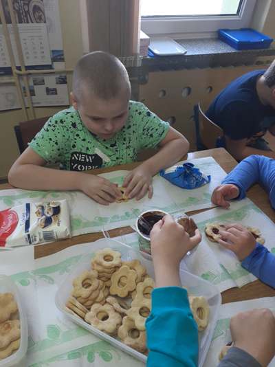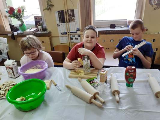 Uczniowie świetlicy dzieci najmłodszych uczestniczą w zajęciach twórczych, kreatywno – ruchowych „Pozwól mi zrobić to samemu”, w których pokazują swoje samodzielne umiejętności. Dzieci bardzo chętnie wykonują różnego rodzaju czynności kulinarne połączone z praktyką samodzielnego wykonania powierzonych zadań. Takie zajęcia u młodych osób, wzmacniają poczucie ciekawości, tworzą grupę rówieśniczą, uczą współpracy. Dzieci pomagają sobie wzajemnie z uśmiechem na twarzy. W naszej świetlicy najmłodsi uczą się przez doświadczenia i praktykę, które umożliwiają dziecku wejście w świat zabawy jak również nauki samodzielnego wykonania np. ciasta do pizzy, pierogów czy ciasteczek przekładanych marmoladą i misternie ozdabianych. Ważną rolę odgrywają również ćwiczenia ruchowe pokazują one jakie przeszkody dzieci mają do pokonania i z jaką determinacją podejmują się tych zadań. Pozwalamy Wam zrobić to samemu!