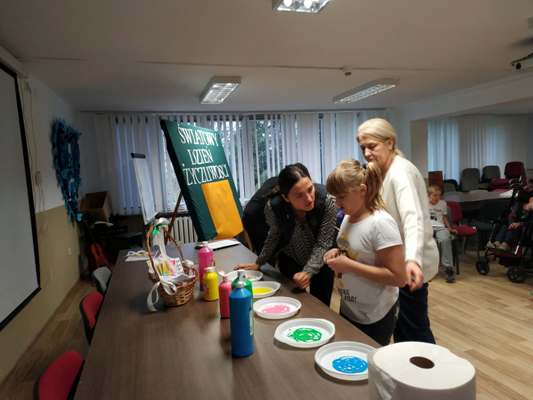 Obchody naszego Tygodnia Życzliwości zaczęliśmy od Drzewa Dobrego Słowa, symbolicznego drzewa z pustymi gałęziami, które zapełniliśmy zielonymi listkami, na których można było zapisać pozytywny komunikat, dobre słowo skierowane do innych osób czy po prostu krótkie, serdeczne życzenia. Kolorem przewodnim pierwszego dnia „7 dni Życzliwości” był zielony utożsamiany z naturą i przyrodą, ale także ze szczęściem i nadzieją.