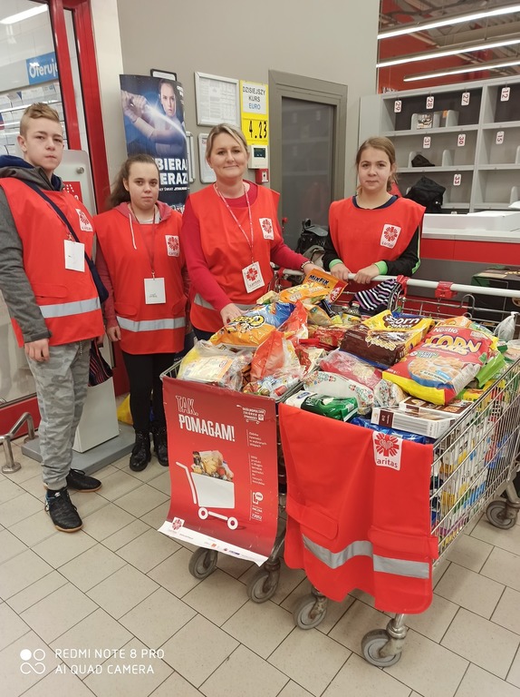 W dniach 6 - 7 grudnia 2019 roku wolontariusze PZPSW wsparli ogólnopolską akcję Caritas „Tak. Pomagam”. Przez dwa dni nasi wychowankowie wraz z wychowawcami kwestowali w sklepie „Lewiatan” oraz supermarkecie „Kaufland” w Hrubieszowie. Zbierali żywność i produkty długoterminowe, słodycze, napoje, które w formie paczek trafią do najbardziej potrzebujących rodzin z całej Polski. Celem udziału wychowanków w zbiórce było uwrażliwienie na potrzeby innych, wskazanie drogi prowadzącej do niesienia pomocy potrzebującym, a przede wszystkim pokazanie, że warto dać siebie innym poprzez poświecenie własnego, cennego czasu na robienie czegoś dobrego. Dzięki niezwykłej uprzejmości Caritas, część zebranych produktów, trafi do wychowanków grup wychowawczych jako pomoc na zajęcia kulinarne.