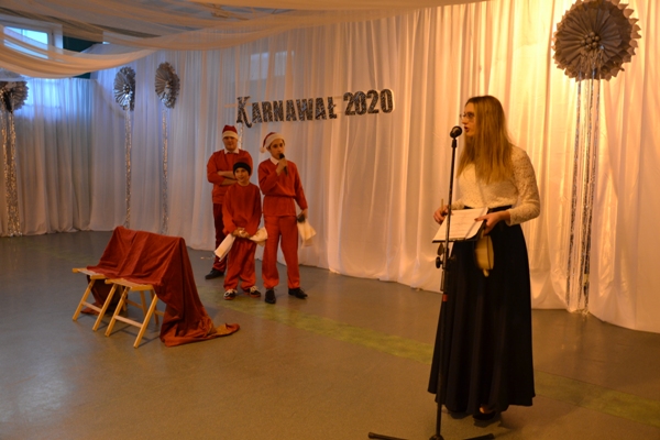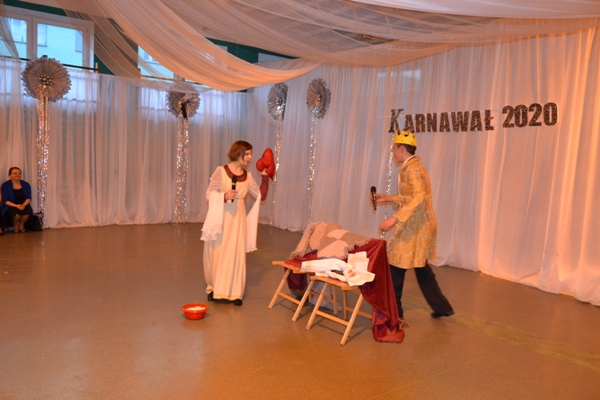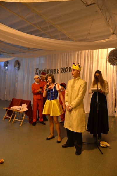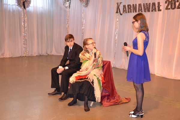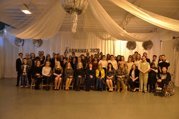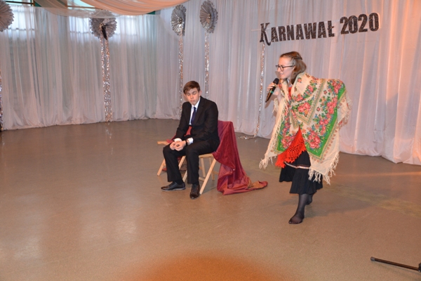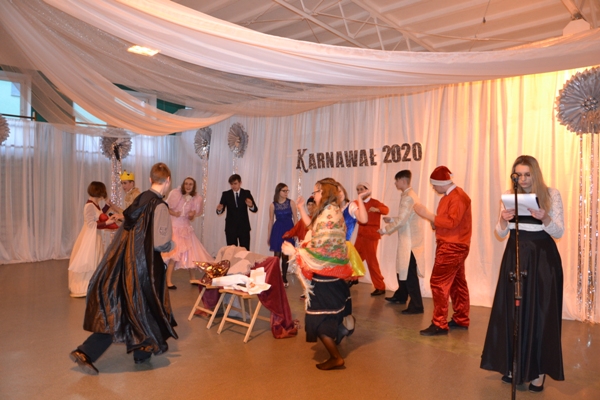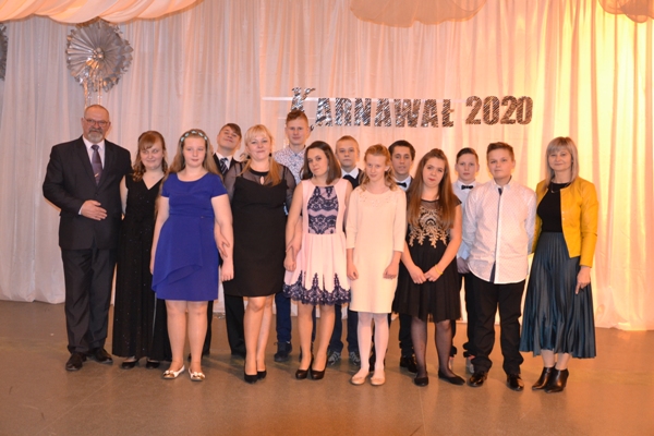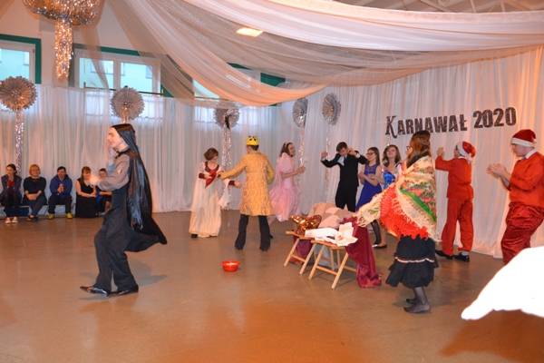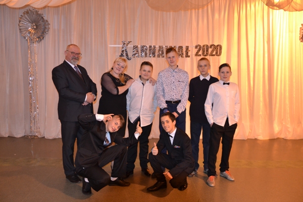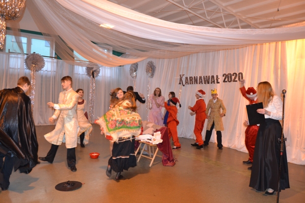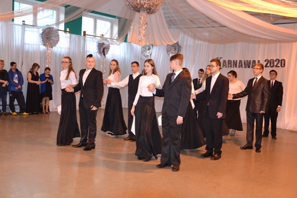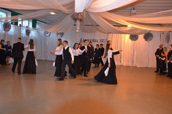 W czwartek 20 lutego w naszym Ośrodku odbył się Bal Karnawałowy, którego głównymi bohaterami byli uczniowie klas kończących w tym roku naukę w szkole podstawowej i w szkole zawodowej. Uroczystość rozpoczął pan Dyrektor Lech Jurczuk okolicznościowym przemówieniem, a następnie rozbrzmiał uroczysty Polonez, przepięknie zatańczony przez uczniów. Po emocjonującym tańcu przyszedł czas na przedstawienie w wykonaniu Grupy Teatralnej "Czary Mary". Babcia zagrana wyjątkowo przez Justynkę, zaprosiła wszystkich do obejrzenia dwóch bajek o Królewnie Śmieszce i Kopciuszku oraz znanym sloganem zachęciła wszystkich zebranych do picia mleka! Młodzież podziękowała organizatorom balu i choinki szkolnej Dyrekcji, Wychowawcom oraz Rodzicom. Nadszedł więc czas na poczęstunek, wszyscy zasiedli do pięknie nakrytych stołów. Parkiet nie pustoszał nawet przez chwilę, a to za sprawą fantastycznego didżeja Tomka.