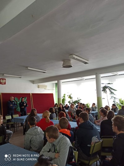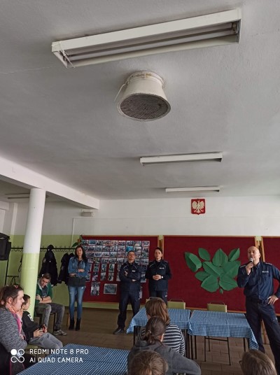dniu 12 lutego 2020 r. w naszej szkole odbyło się pierwsze spotkanie z funkcjonariuszami KPP z Hrubieszowa w ramach realizacji programu "Zapobieganie przemocy psychicznej i cyberprzemocy w niebezpiecznym dzisiejszym świecie". Uczestnikami spotkania byli uczniowie klas Szkoły Podstawowej,Szkoły Przysposabiającej do Pracy oraz uczniowie Branżowej Szkoły I Stopnia. Podczas spotkania propagowana była wiedza o bezpieczeństwie w życiu codziennym,domu czy w szkole. Uczniowie mogli dowiedzieć się jak unikać zagrożeń związanych z nieumiejętnym korzystaniem z portali społecznościowych i telefonów komórkowych, o konsekwencjach łamania prawa, sytuacji reagowania podczas doświadczania agresji psychicznej i fizycznej wobec innych, a także uświadomiono uczestnikom czym jest słowo "stalking". Funkcjonariusze ponadto omówili sposoby unikania niebezpiecznych sytuacji. Prowadzono rozmowy o cyberbezpieczeństwie, policjanci uwrażliwiali na odpowiedzialne korzystanie z internetu, rozważne zamieszczanie wszelkich informacji czy fotografii na portalach internetowych. Poruszane tematy cieszyły się dużym zainteresowaniem wśród uczniów o czym świadczyły pytania kierowane do Policjantów.