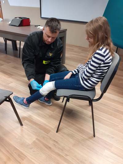 W dniu 9 marca 2020 r. odbyło się spotkanie profilaktyczne z funkcjonariuszem Powiatowej Państwowej Straży Pożarnej w Hrubieszowie. Tematem spotkania była pierwsza pomoc w nagłych wypadkach oraz opatrywanie ran. Uczniowie przećwiczyli również prawidłowe wzywanie pomocy. To spotkanie było kolejnym szkoleniem przeprowadzonym w ramach realizacji programu innowacji pedagogicznej pt. „Uczymy się ratować z potrzeby serca i podążać w kierunku wiedzy i umiejętności”.