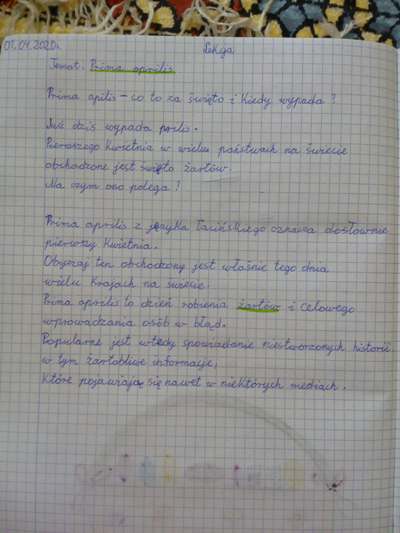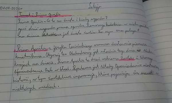 Bieżąca praca na lekcji oraz zadania domowe przekazywane są do oceny za pośrednictwem zdjęcia w komórce, na grupach klasowych oraz drogą mailową. Uczniowie mają możliwość na bieżąco zadawać pytania gdy czegoś nie rozumieją a nauczyciele służą pomocą i wsparciem przez cały czas zajęć. Uczniowie pod czujnym okiem rodziców rozwiązują w miarę swoich możliwości zadania. Zarówno uczniowie, rodzice jak i nauczyciele oswajają się z nowym systemem nauczania. Obecna sytuacja zdalnego nauczania z jaką się spotkaliśmy z dnia na dzień przynosi coraz lepsze rezultaty. Poniżej zamieszczone zostały efekty naszej zdalnej pracy.