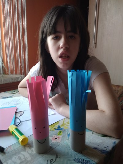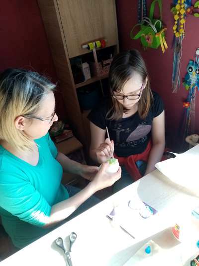 By zachować zasady BHP, zajęcia zdalne prowadzone są zgodnie z planem zajęć sprzed kwarantanny. Przekazywany materiał dostosowany jest do możliwości psychofizycznych uczniów, ich zainteresowań, potrzeb. Są to opracowywane karty pracy, konspekty zajęć, zdjęcia kart podręczników z zagadnieniami. Zadania są szczegółowo opisywane, ilustrowane przykładami. Bezpośredni kontakt nauczyciel - uczeń zastępują tablice poglądowe, filmy, wykresy, prezentacje multimedialne, strony interaktywne np. matzoo.pl. Uczniowie chętnie wykonują też prace techniczne, malarskie, decoupage. Brali udział w akcji "Kartka dla Medyka". Zajęcia kulinarne zamieniają się we wspólne - rodzinne przygotowywanie posiłków. Inną formę mają też zajęcia muzyczno - taneczne, wychowania fizycznego i rehabilitacyjne.