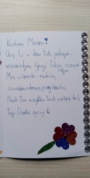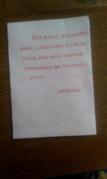 Dla mojej Kochanej Mamy z okazji jej święta życzę dużo, dużo zdrowia, słonecznych dni i miłości. Życzy Amelka