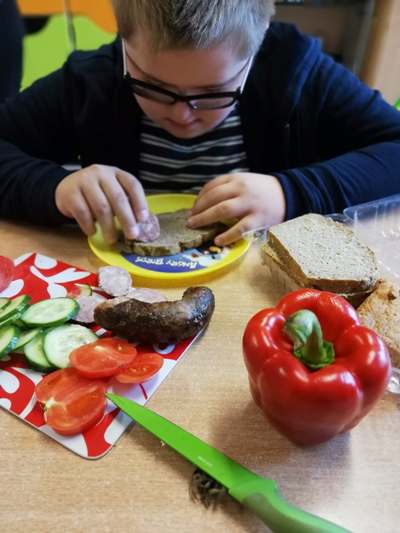 Działanie zespołu nauczycieli ds. nauczania w klasach 1-3 akcja ,,Jem drugie śniadanie” trwało w bieżącym roku szkolnym przez tydzień od 7.09.2020 r. do 11.09.2020 r. Wychowawcy klas ze swoimi uczniami na lekcjach funkcjonowania w środowisku lub edukacji społecznej i przyrodniczej przeprowadzili pogadanki w klasach oraz nadzorowali w bezpiecznych i higienicznych warunkach wykonanie kanapek przez poszczególnych uczniów. Każdy przyniósł swoje produkty na pożywną kanapkę, po czym sam jej skosztował. W tym roku nie dzieliliśmy się wykonanymi kanapkami. Uczyliśmy się samodzielności, przestrzegania reżimu sanitarnego, zasad BHP oraz kulturalnego spożywania posiłku i dobrych manier.